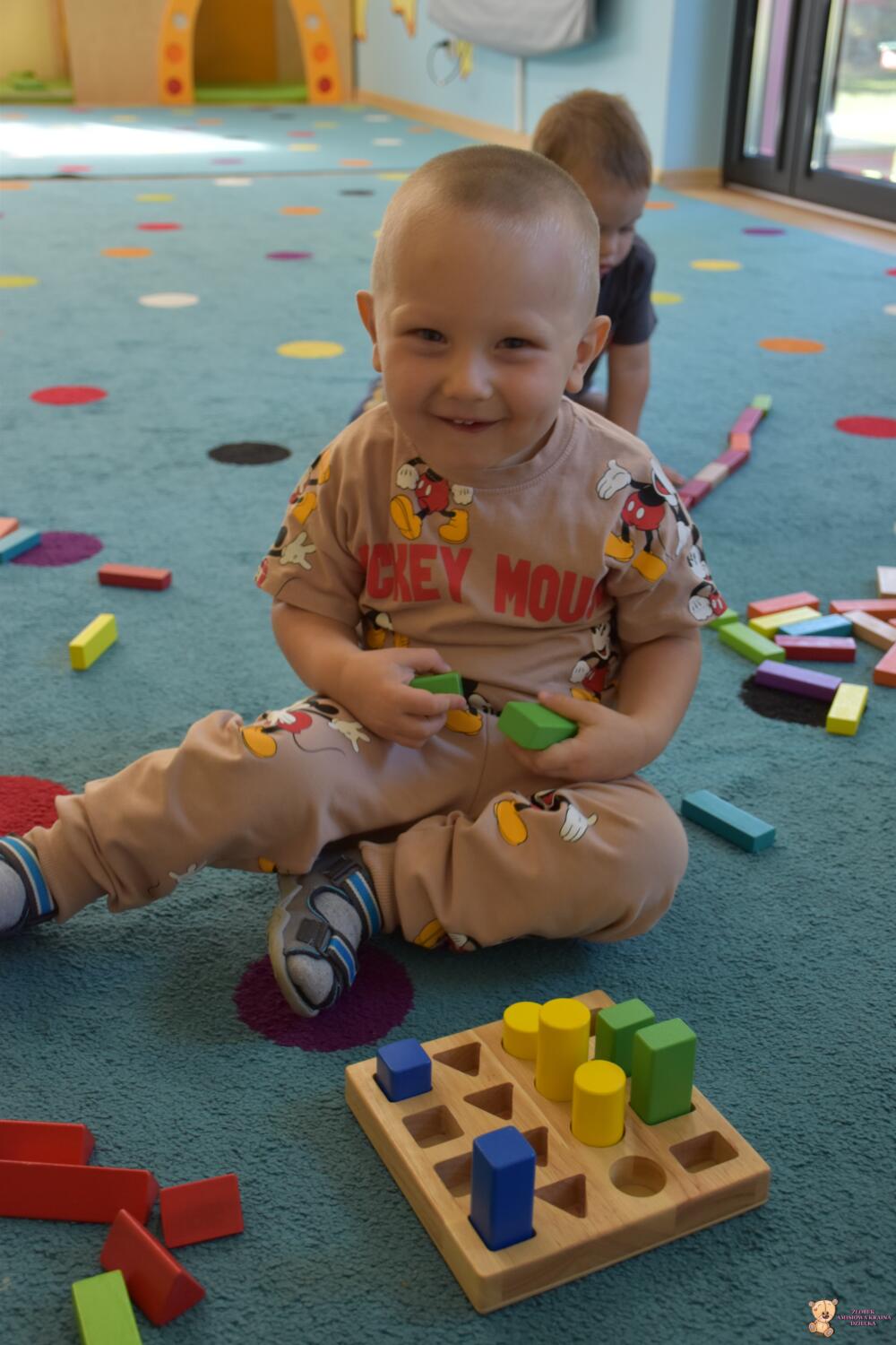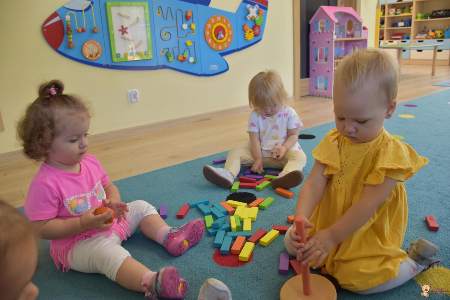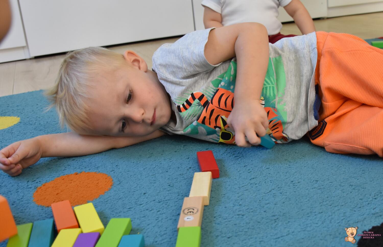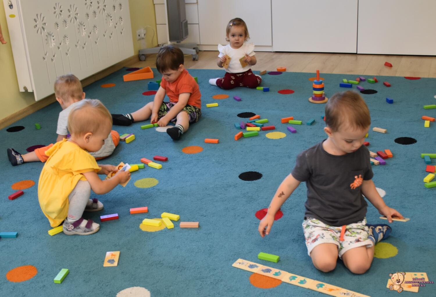 Dziś na zajęciach z metody Montessori Amisie bawiły się drewnianymi klockami
