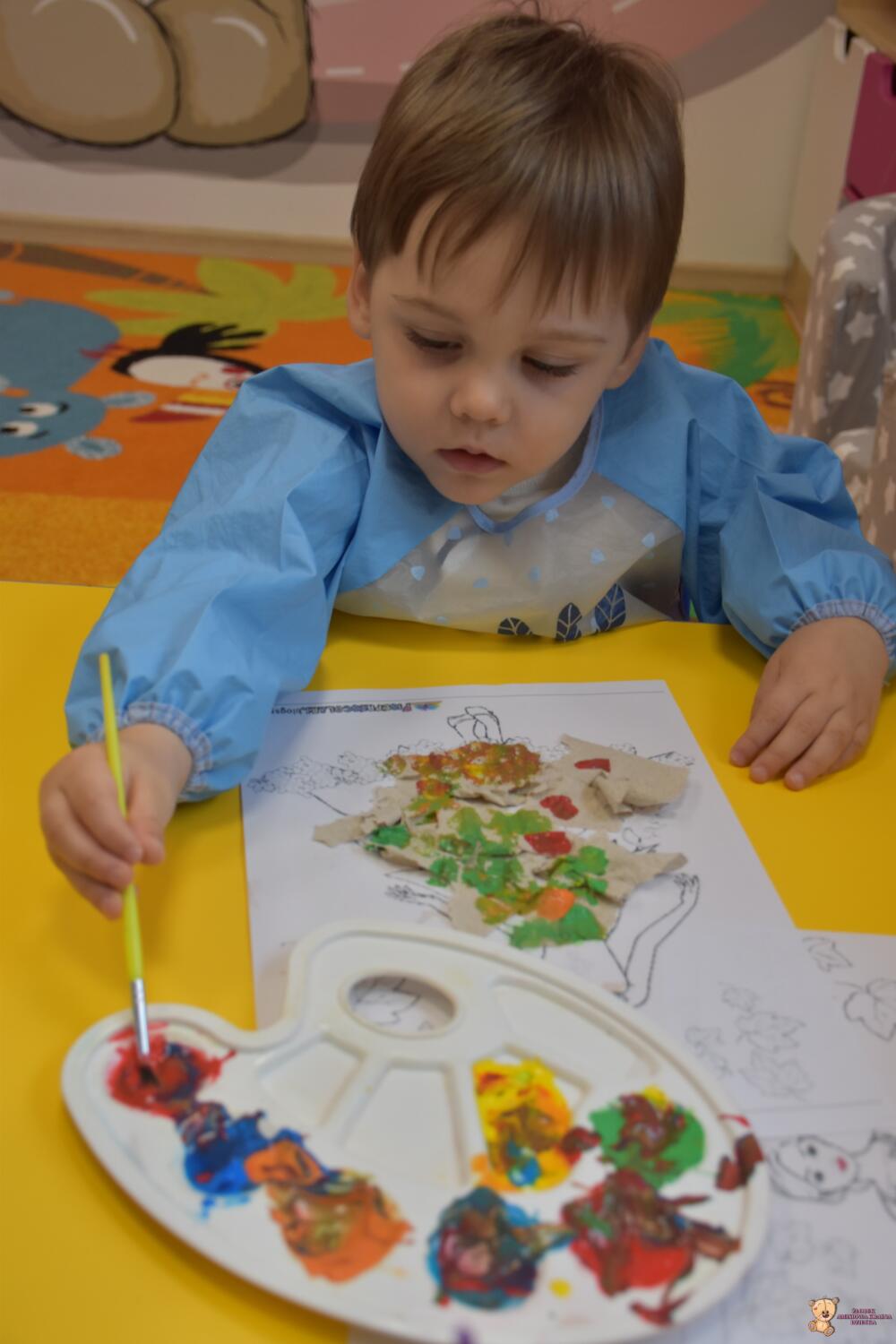 .Na koniec wykonaliśmy pracę plastyczną z wykorzystaniem makulatury i farb stworzyliśmy Panią Jesień…..to była zabawa ![]()