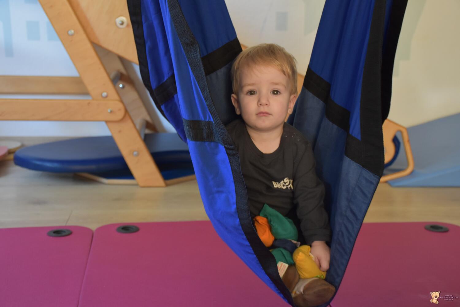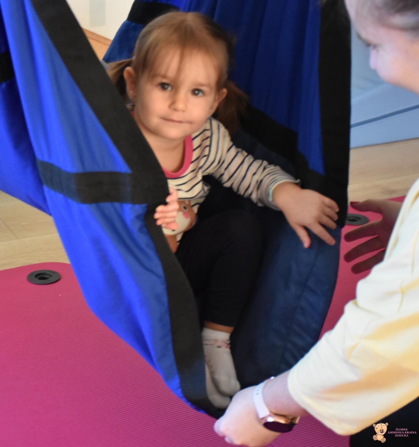 Dziś na zajęciach Integracji Sensorycznej Amisiaki stymulowały układ przedsionkowy, rozwijały koordynację wzrokowo ruchową, percepcję słuchową, równowagę w hamaku. Zmienialiśmy położenie ciała, rozwijaliśmy i utrwalalismy części ciała oraz stosunki przestrzenne, przekraczaliśmy linię środkową ciała. Nawet najwrażliwsze Amisiaki przekonały się do delikatnego huśtania w hamaku. Jestem z Was dumna. Wspaniale!
