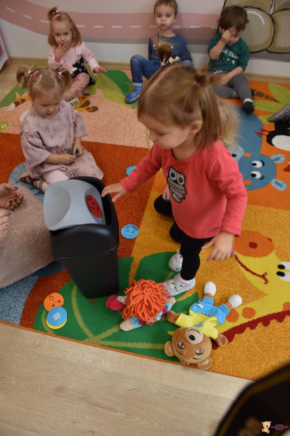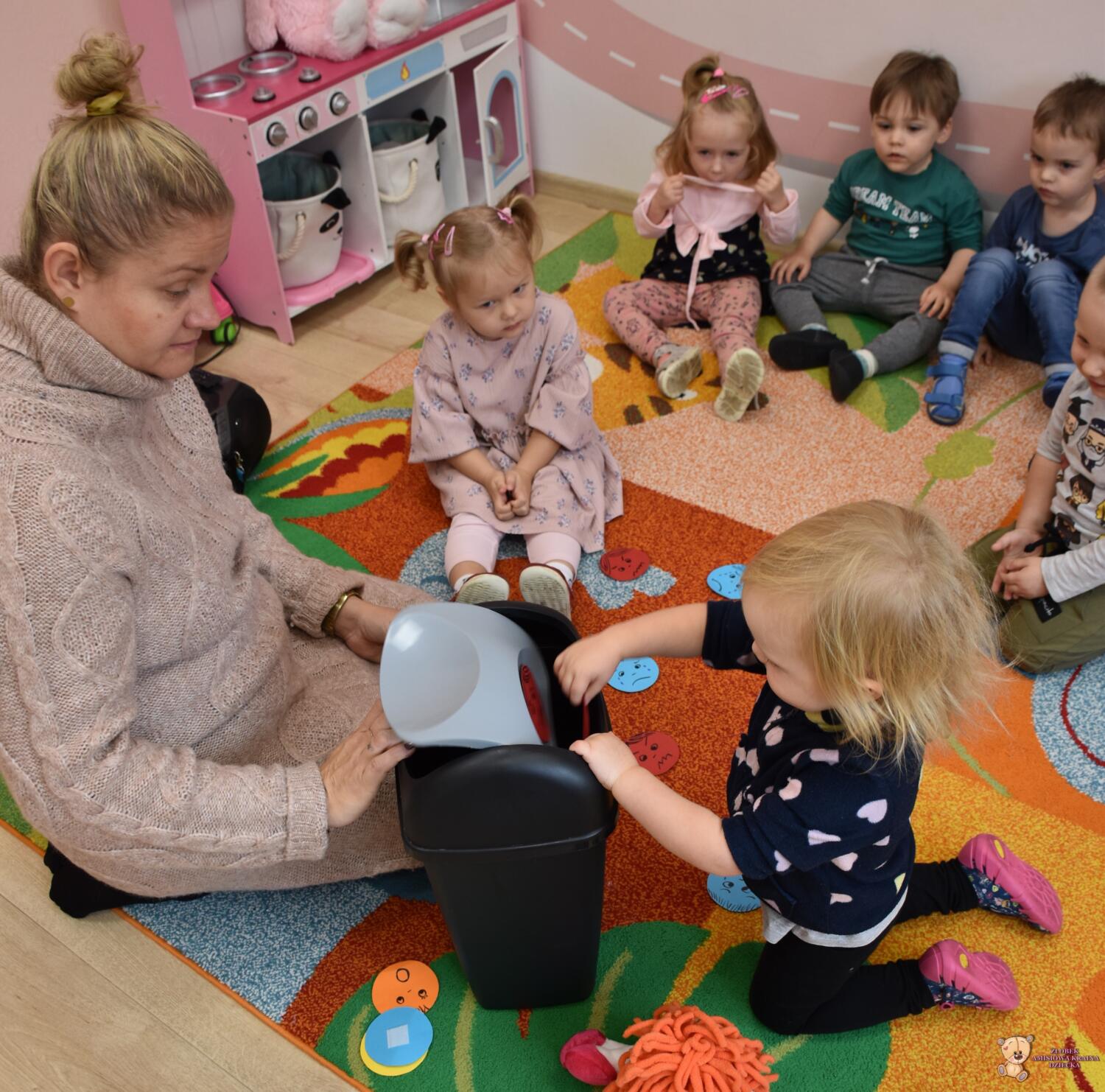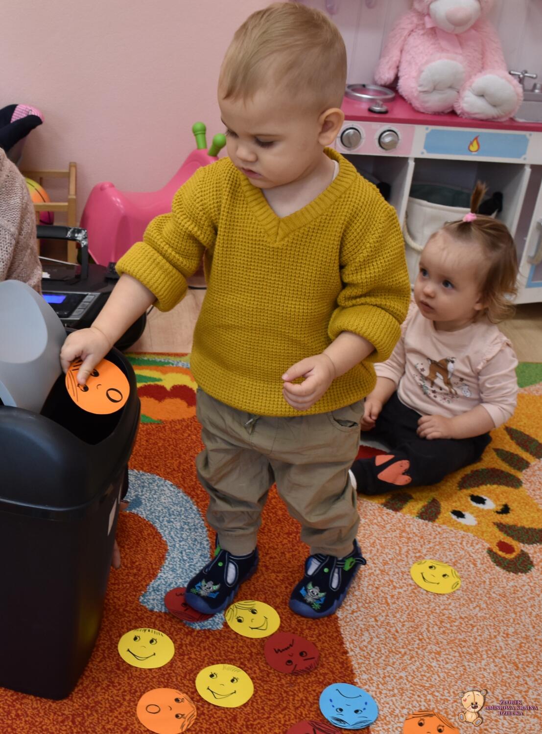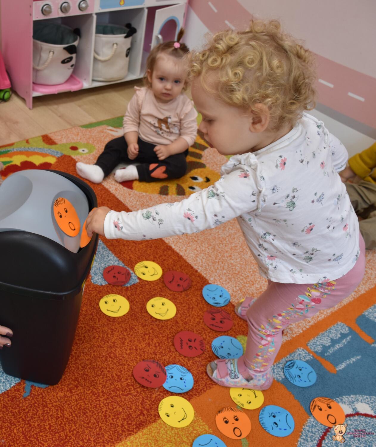 . Amisiaki miały zażądanie wyszukać danej emocji i wrzucić ja do kosza ,ćwicząc tym samym spostrzegawczość. Nie zabrało również zabawy przy muzyce