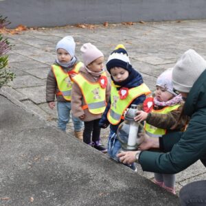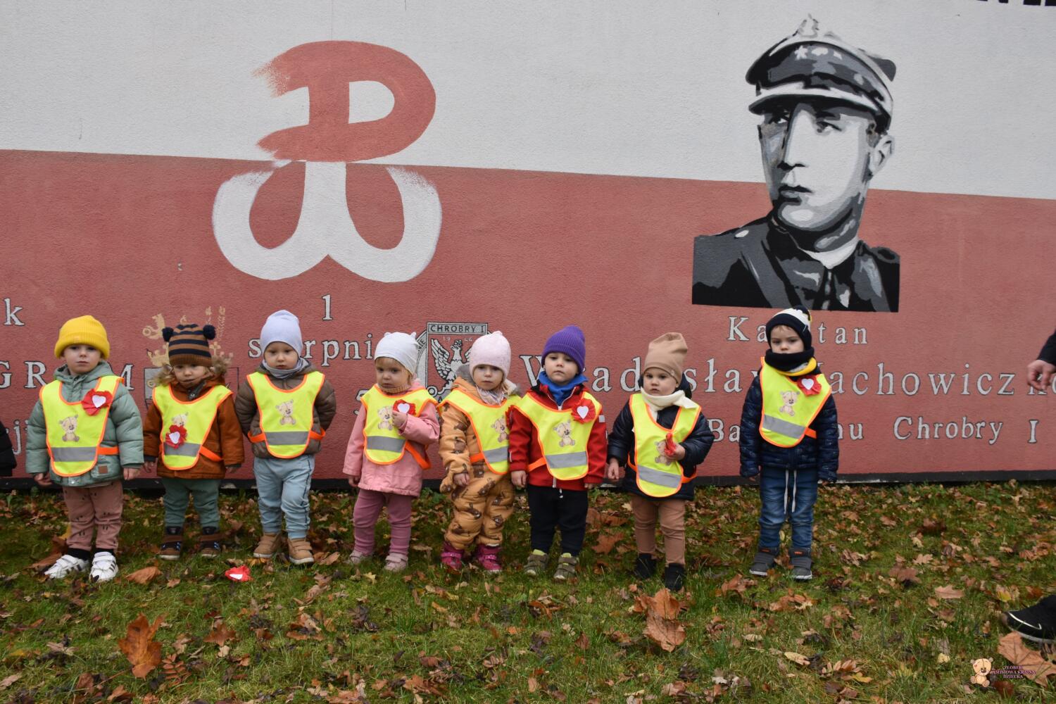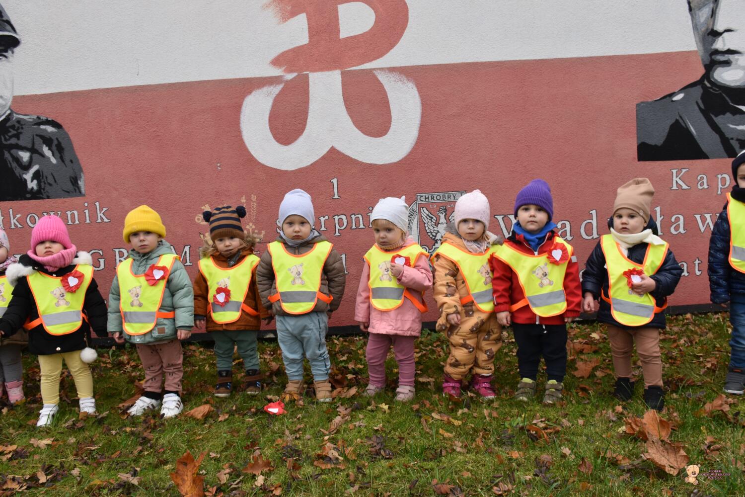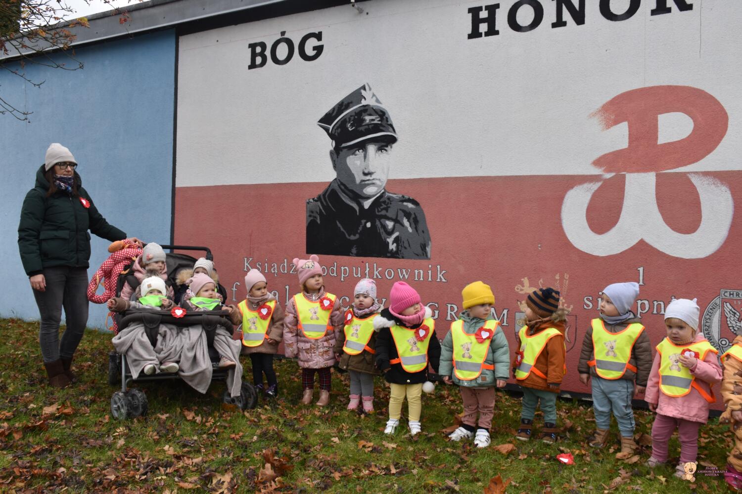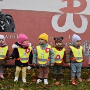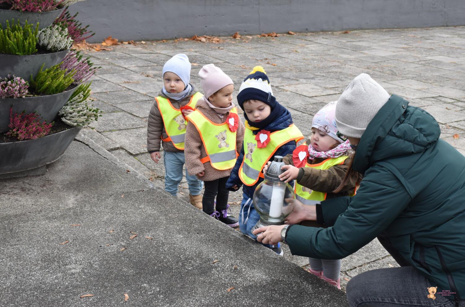 W przeddzień uroczystości obchodów Święta odzyskania Niepodległości nasze AMIsie wybrały się na spacer. Przybyły na ulicę Kobusiewicza pod Pomnik Poległym w Walce o Wyzwolenie Ojczyzny. Zapaliły znicz i zaśpiewały patriotyczną piosenkę pt. ”Jestem Polką i Polakiem”. Nie zabrakło również pamiątkowego zdjęcia naszych maluszków.