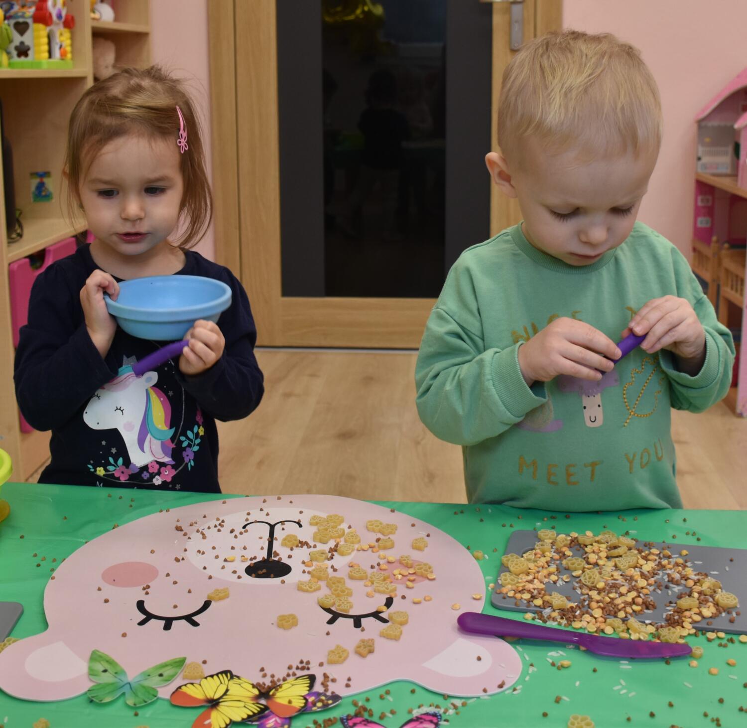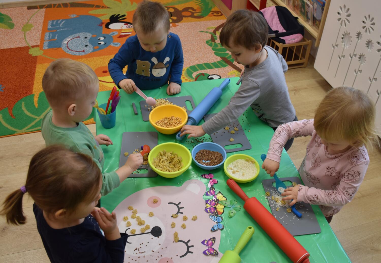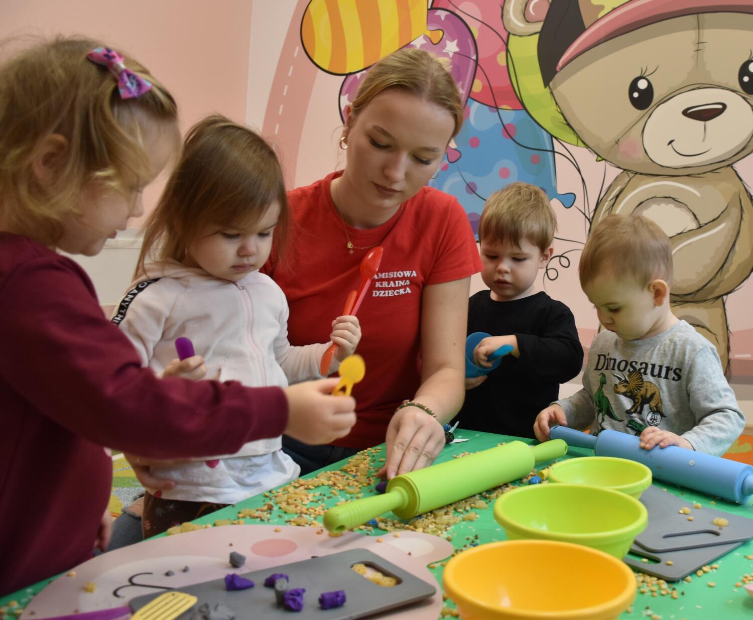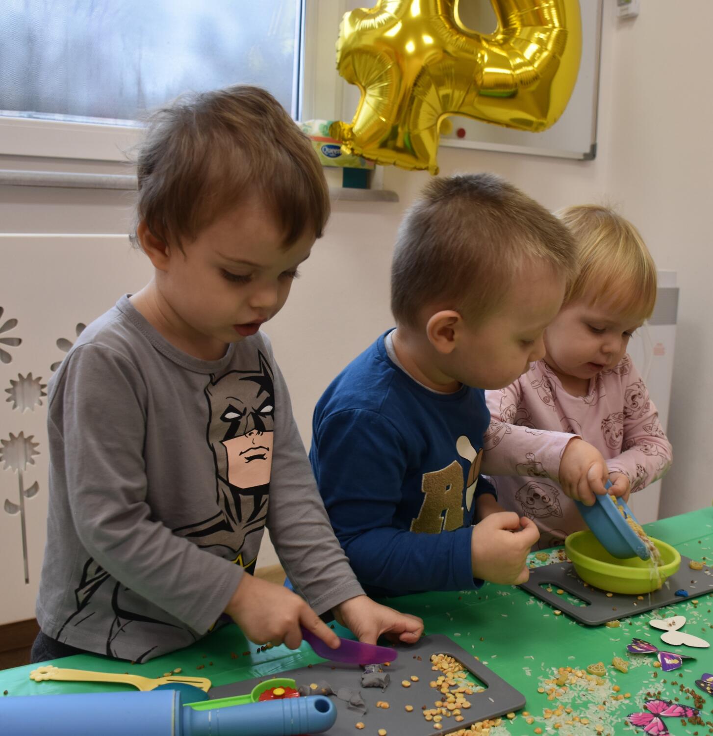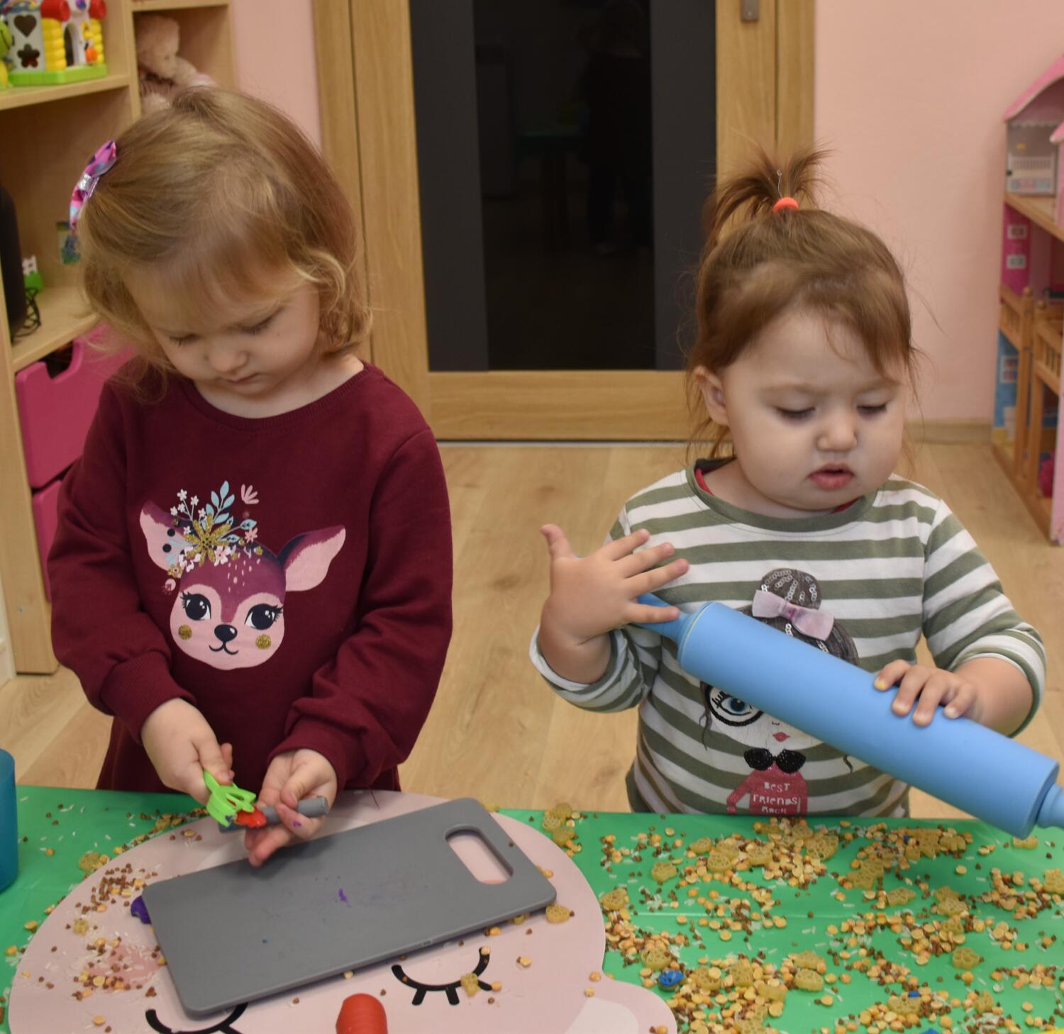 Na dzisiejszych zajęciach z sensoplastyki nasze AMIsiaki lepiły z plasteliny korzystając przy tym z przygotowanych produktów spożywczych takich jak kasza gryczana, ryż oraz makaron. Rozwijając zmysły takie jak dotyk oraz węch.