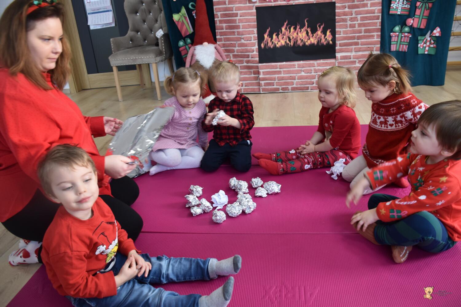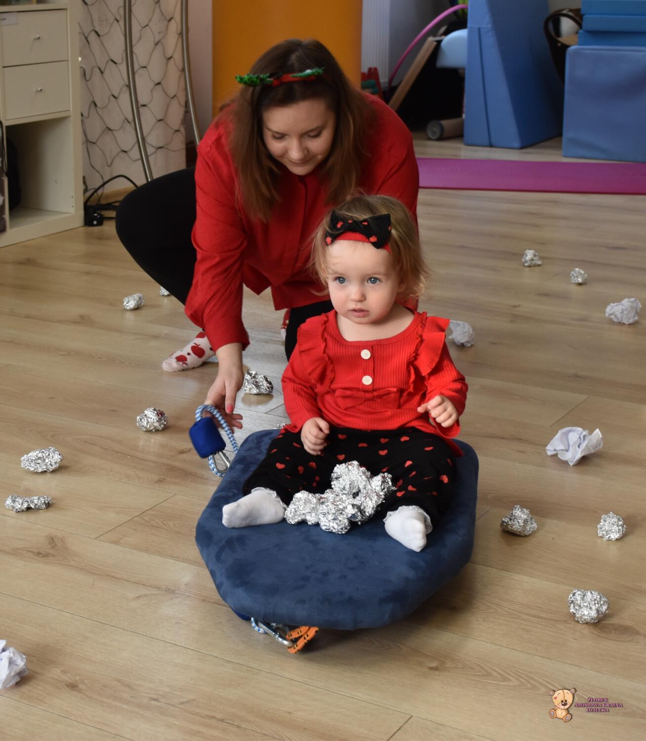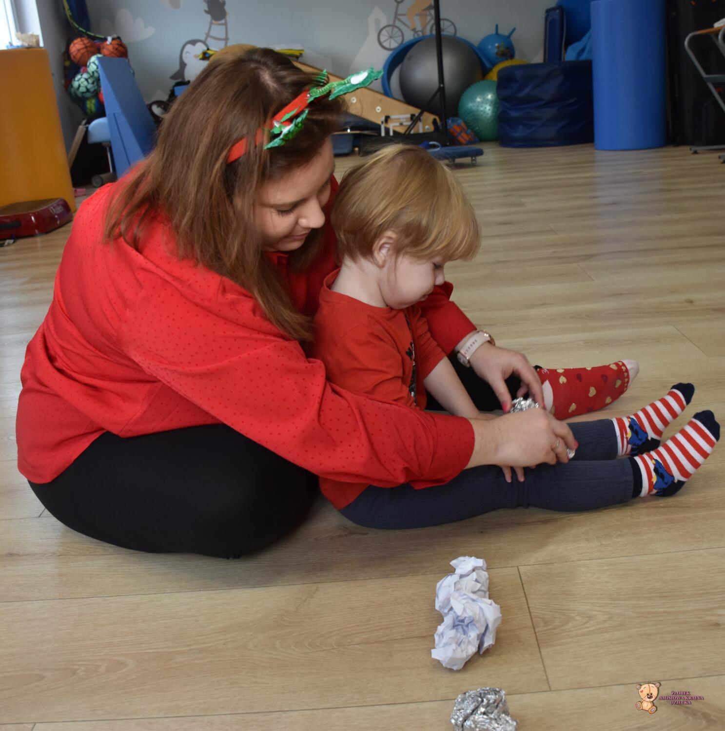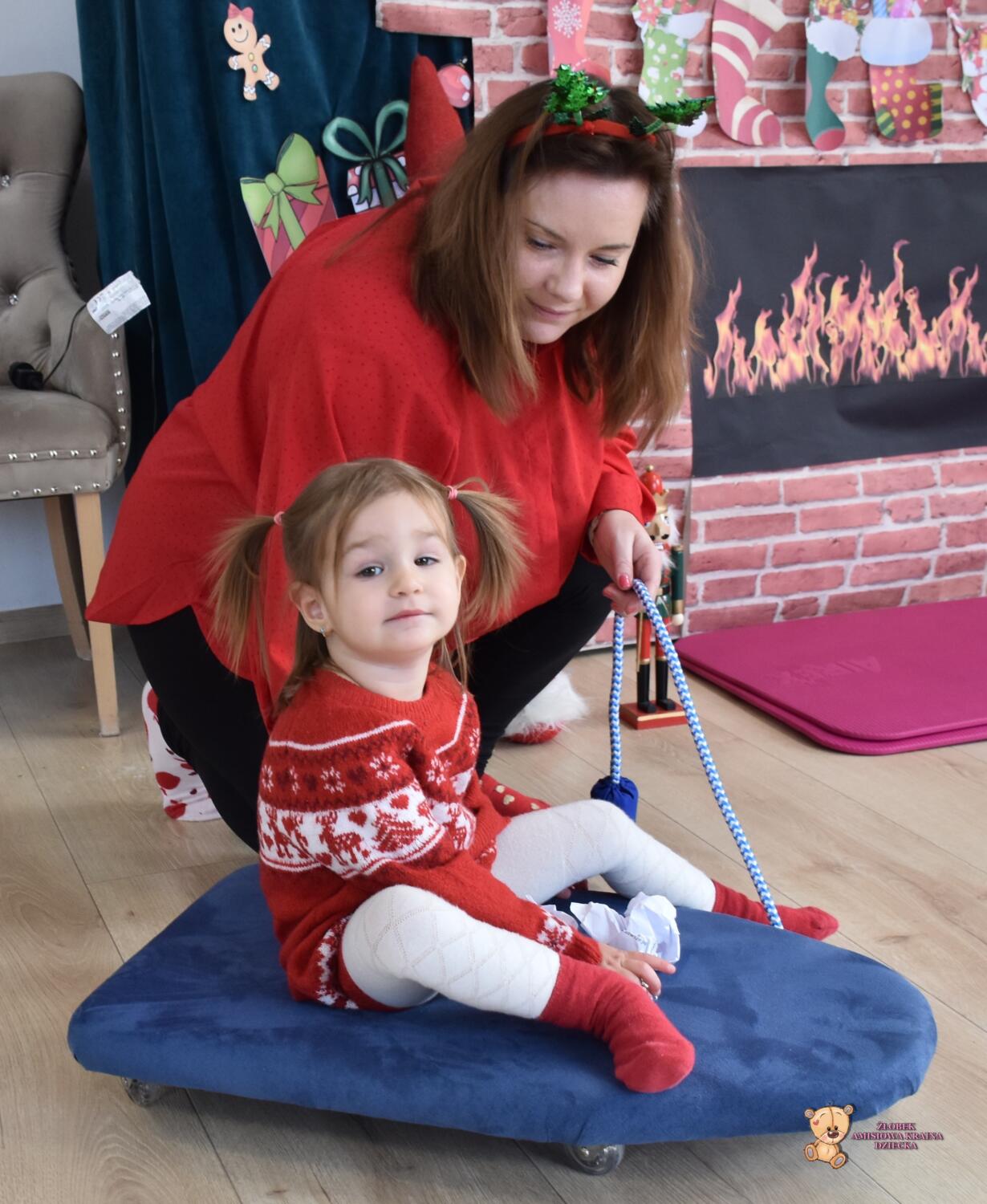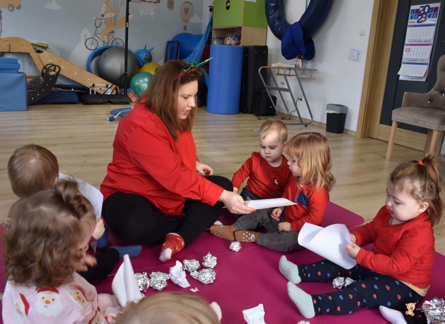Dziś na zajęciach Integracji Sensorycznej Amisiaki poczuły zimowy klimat. Wspólnie ćwiczyliśmy rączki. Mocno ściskając papier i folię aluminiową robiliśmy kule śnieżne. Następnie jadąc na deskorolce zbieraliśmy jak najwięcej kul i wrzucaliśmy je w wyznaczone miejsce. Stymulowaliśmy układ przedsionkowy, koordynację wzrokowo ruchową oraz precyzję w działaniu. Amisiaki miały ogromną frajdę. Wspaniale!
