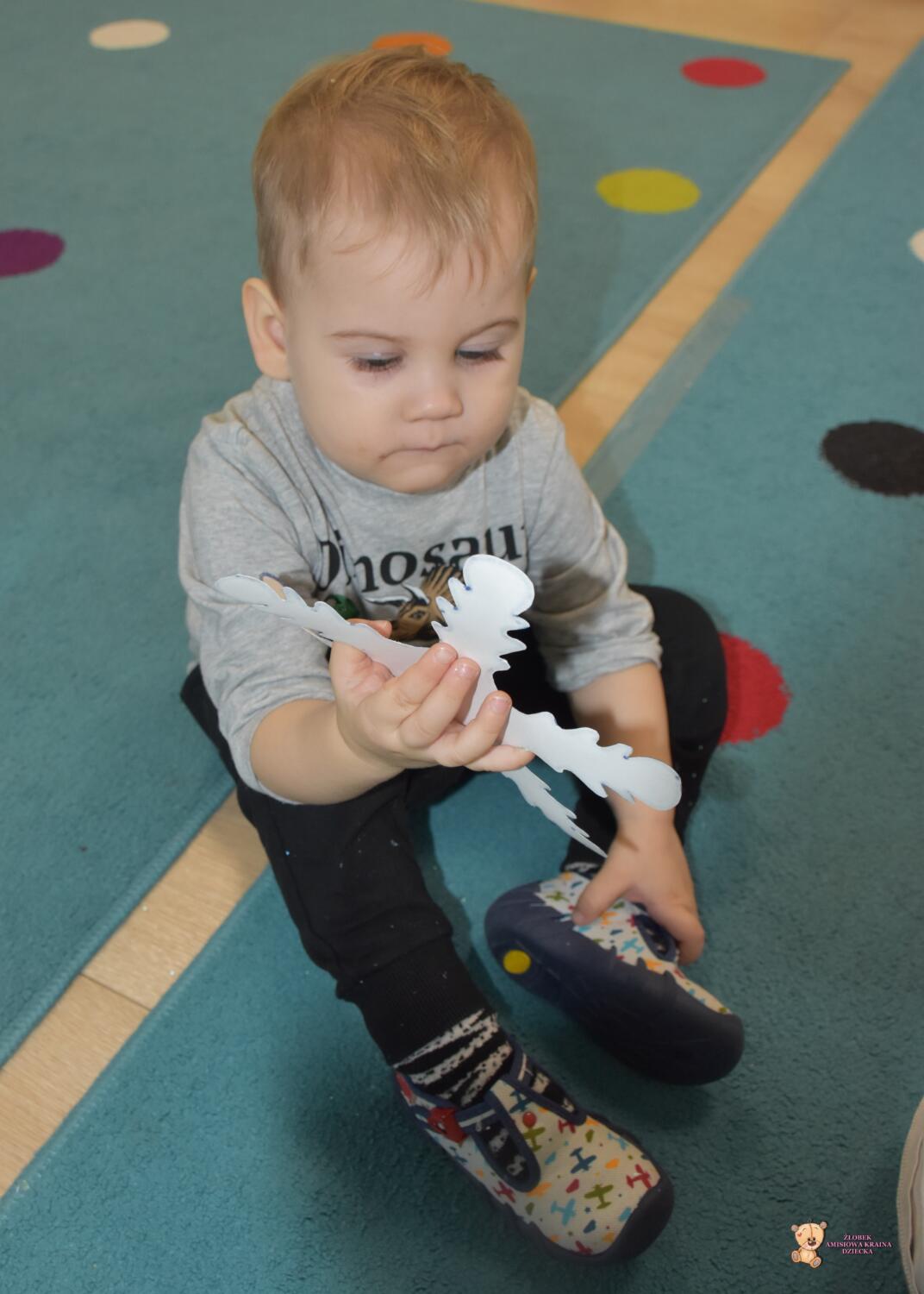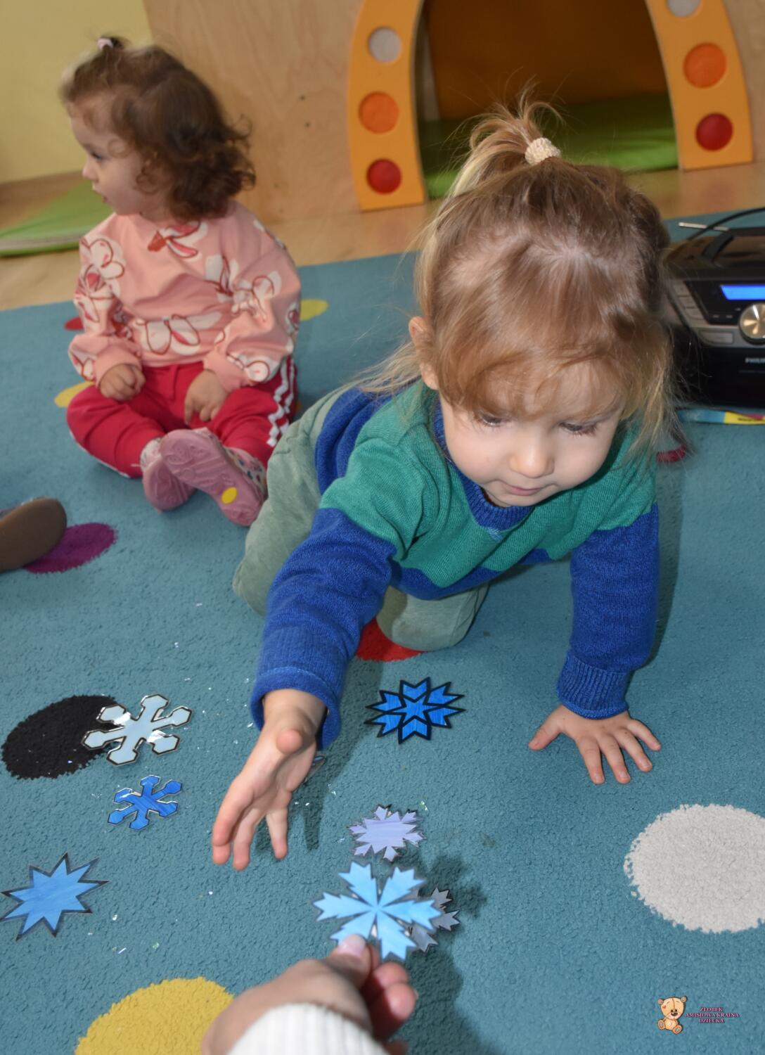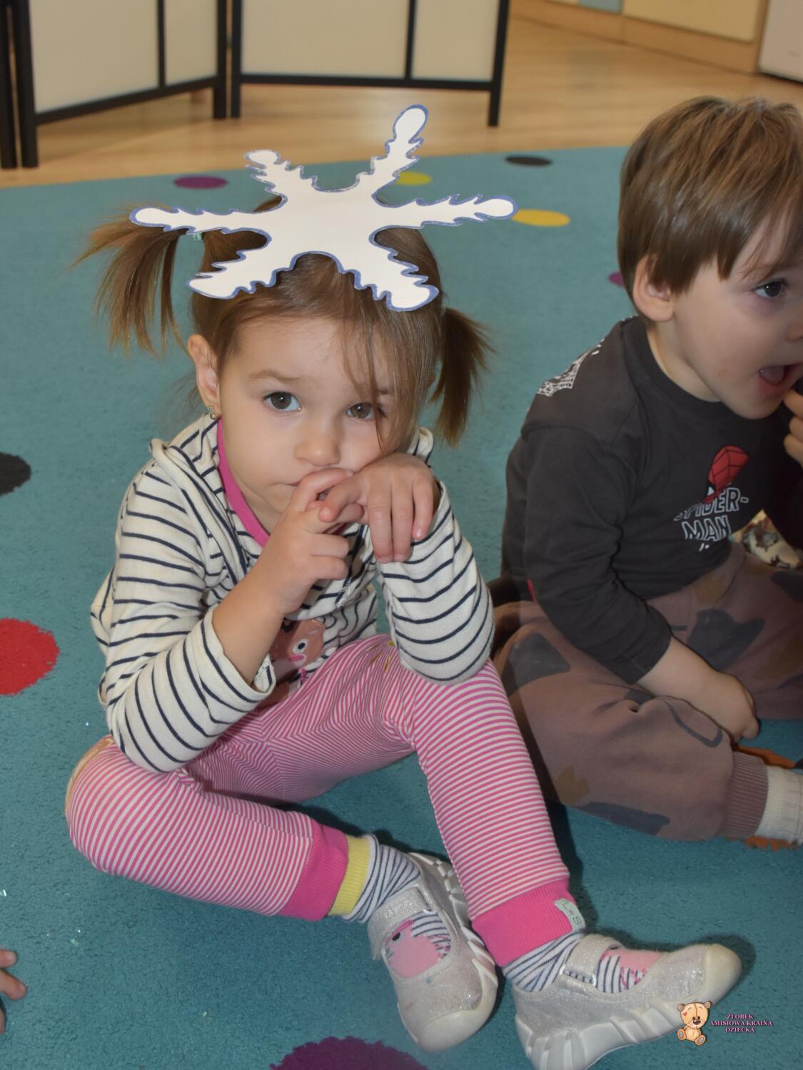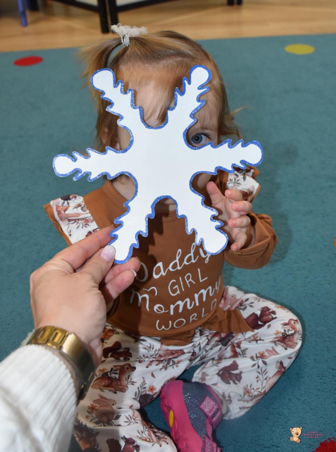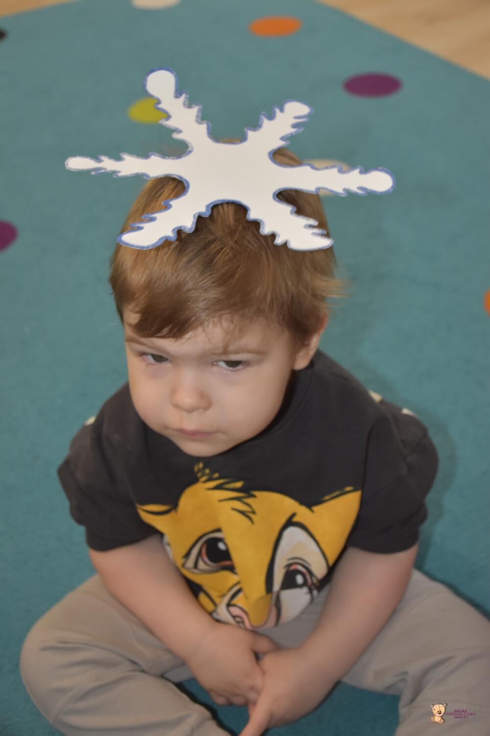 a następnie ciocia pokazała nam różne kształty płatków śniegu. Na koniec ćwiczyliśmy spostrzegawczość i odszukiwaliśmy takie same płatki śniegu