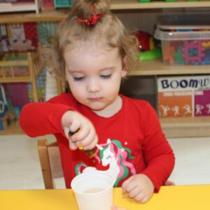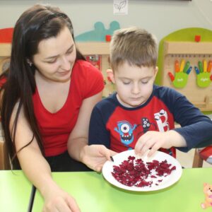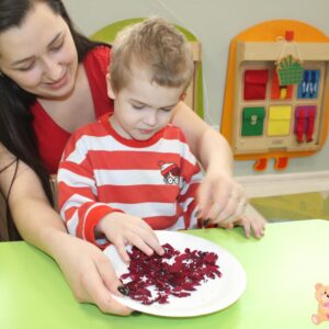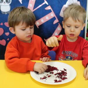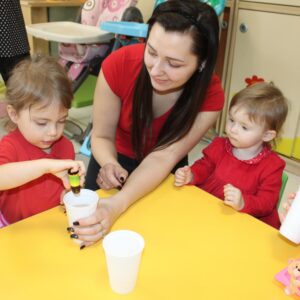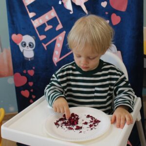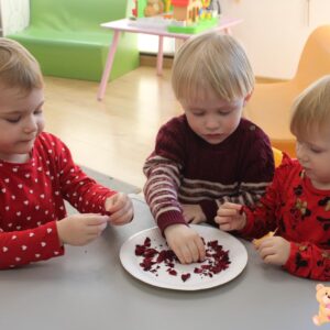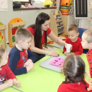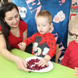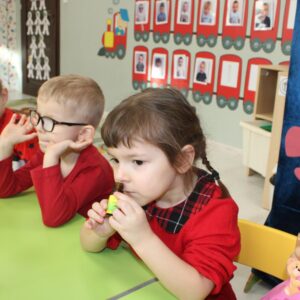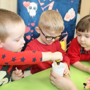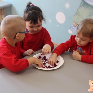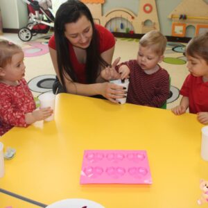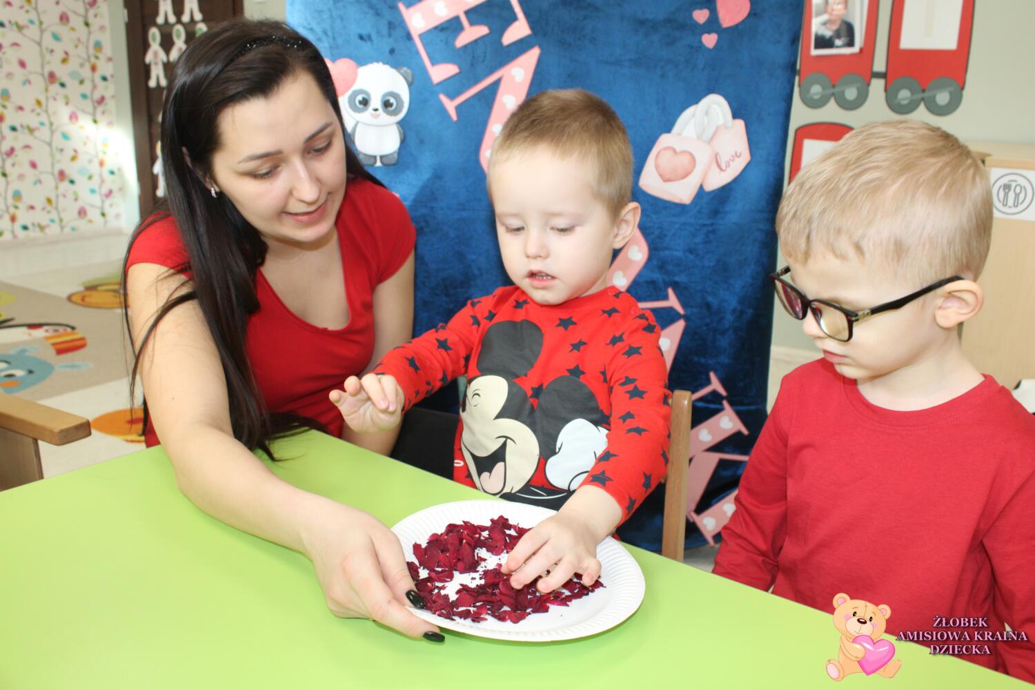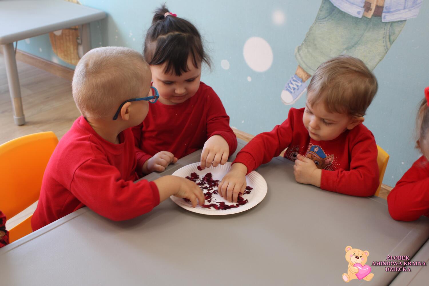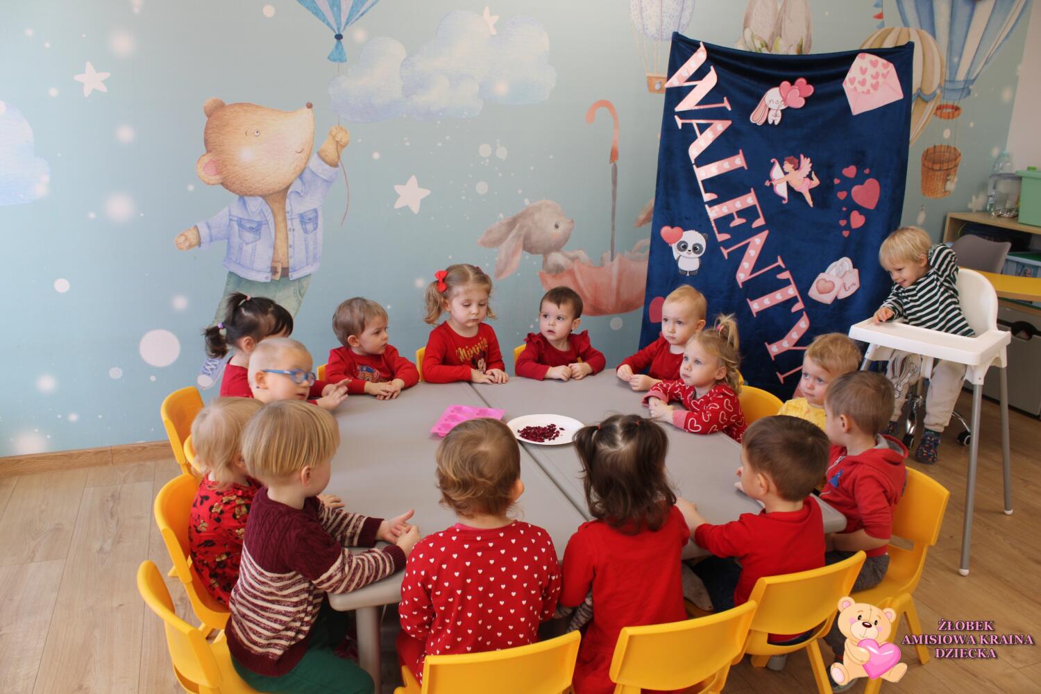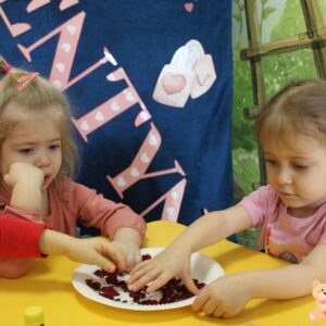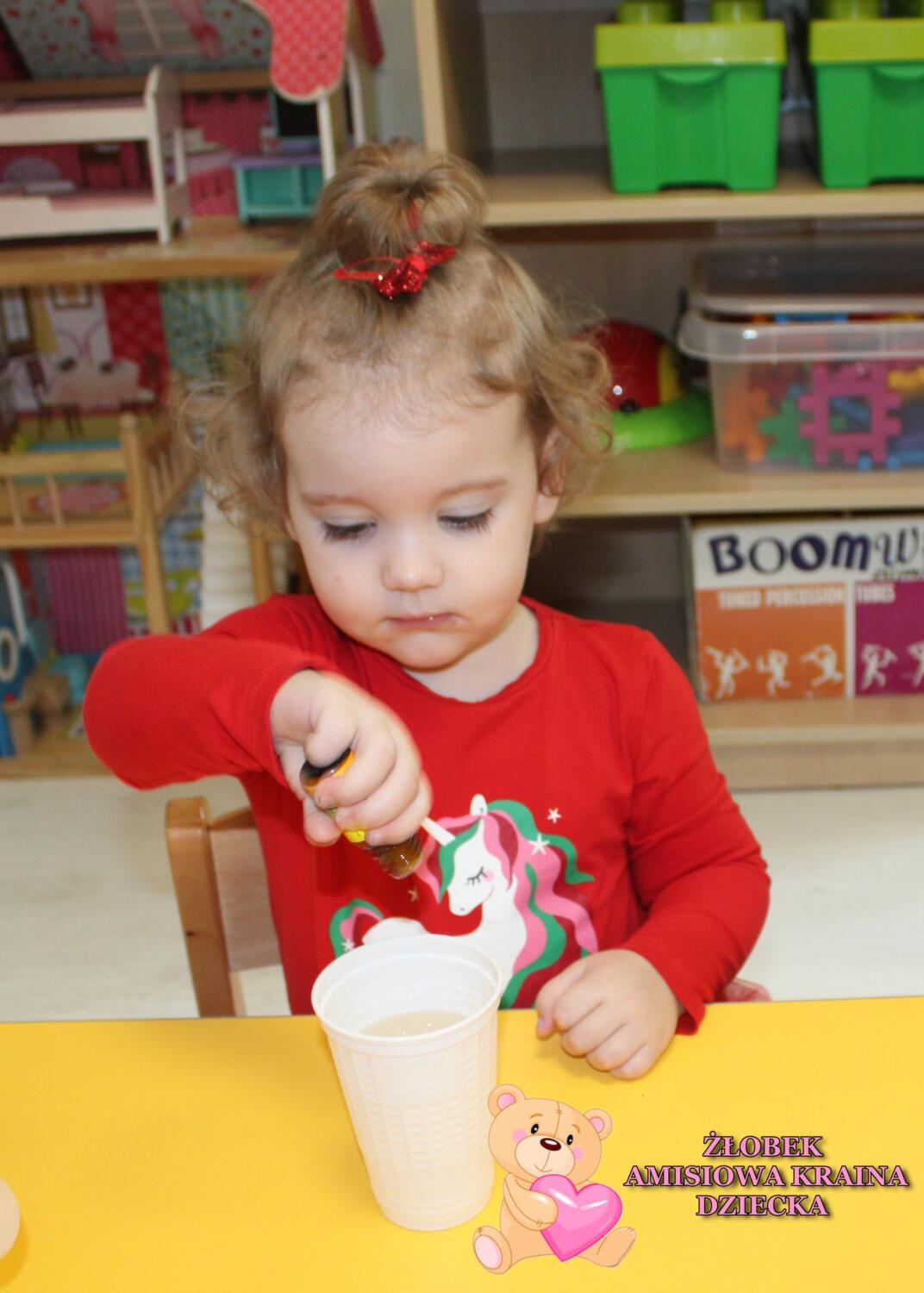 Dzisiaj w AMIsiowej Krainie Dziecka obchodziliśmy Walentynki. Dzieci posłuchały opowieści o świętym Walentym, a następnie zabraliśmy się za robienie mydełek glicerynowych w kształcie serduszek. Wykorzystaliśmy do tego suszone płatki róży oraz aromat różany. Dzieci zmysłami węchu oraz dotyku mogły sprawdzić wszystkie składniki. Z pomocą cioci każdy wykonał dla siebie mydełko, które zabierze do domu.