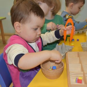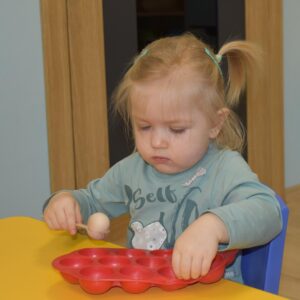 Maluszki w naturalny sposób ćwiczą go od ok 12 miesiąca życia. Ćwiczenia tego typu usprawniają motorykę małą i ćwiczą koordynację ręka – oko oraz ćwiczą precyzję ruchów dłoni i koncentrację ![]()