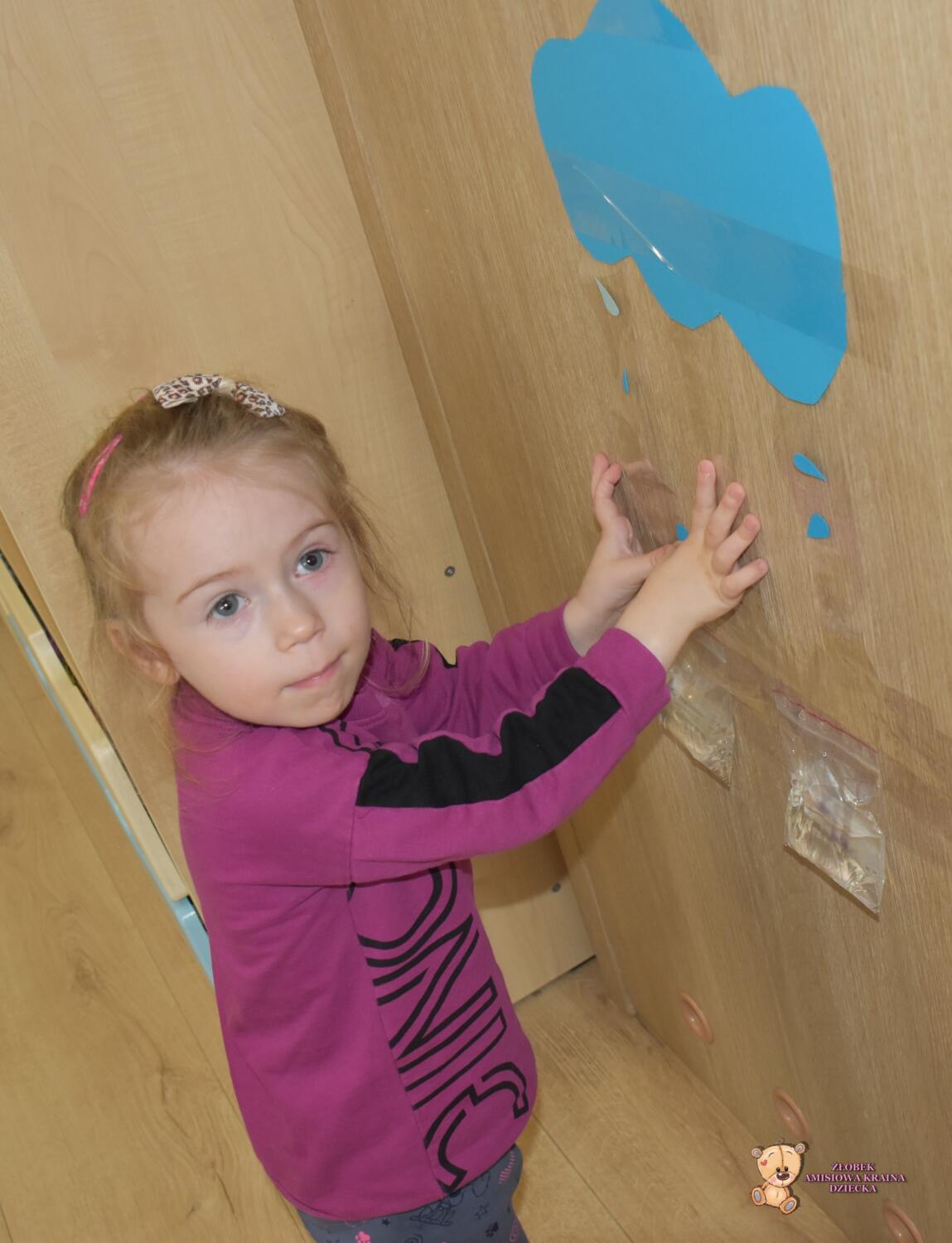 W drugiej części zajęć Amisie tworzyły magiczną chmurkę z której spadały krople deszczu tworzące kałuże ![]()