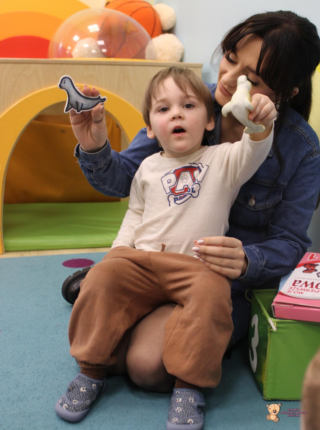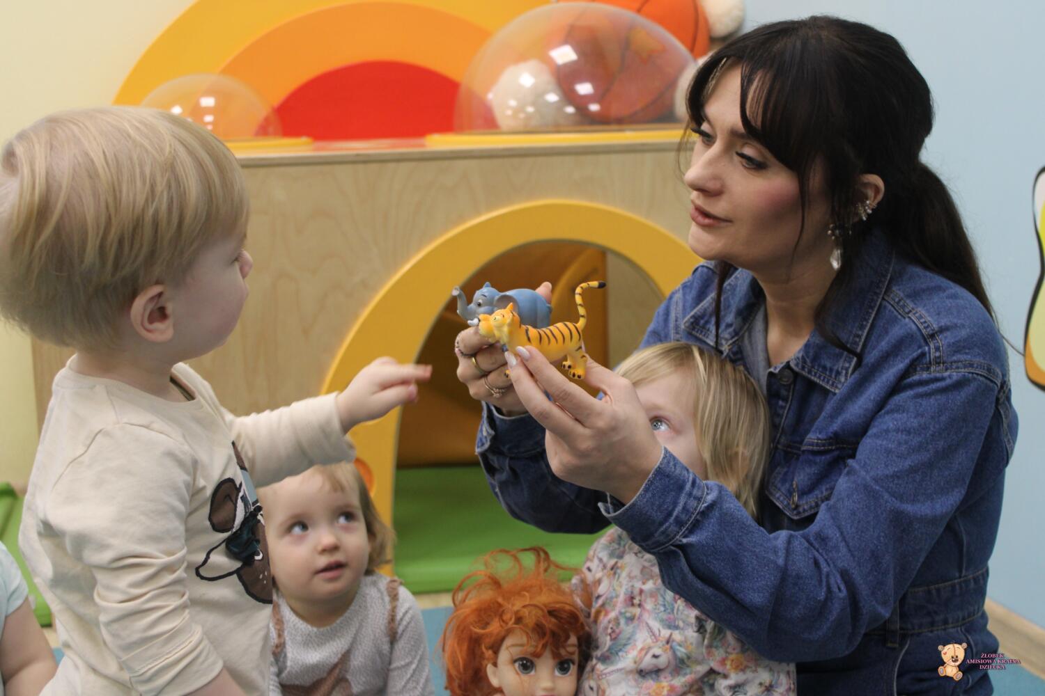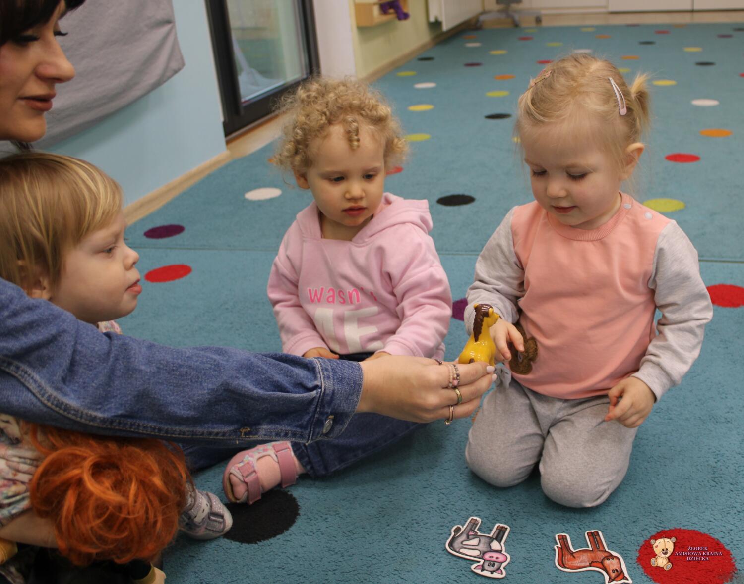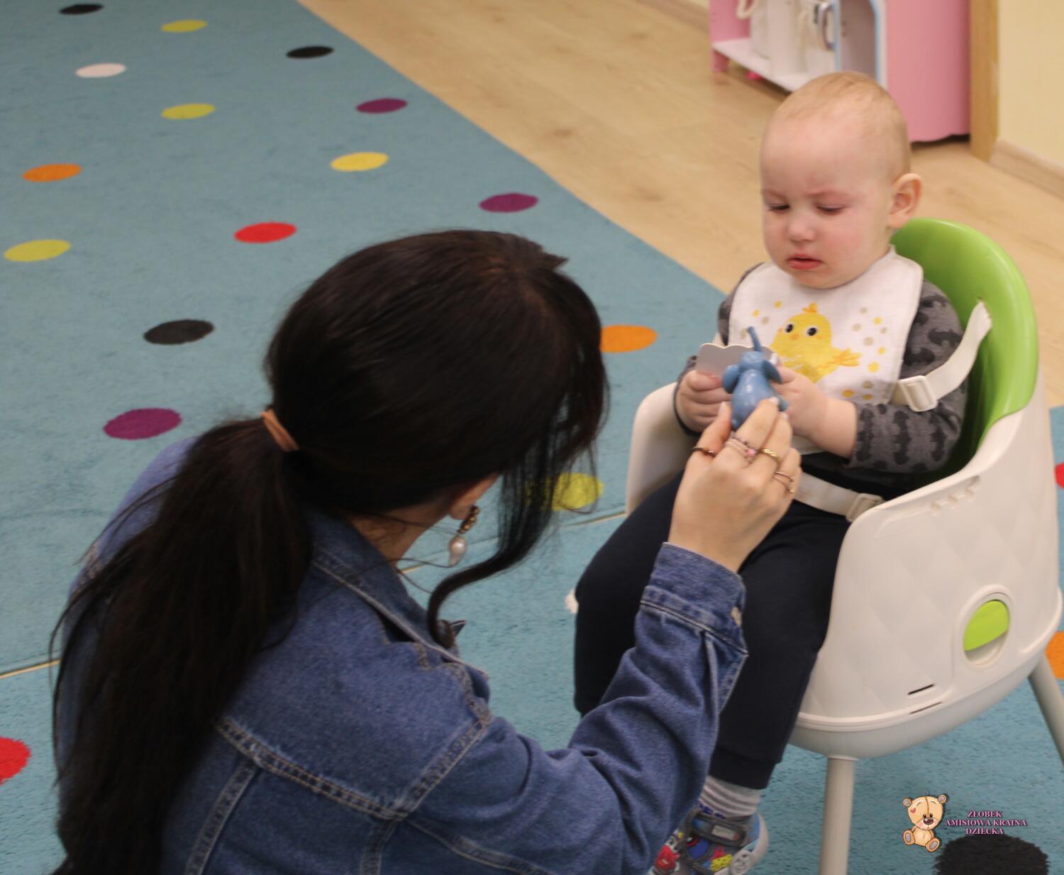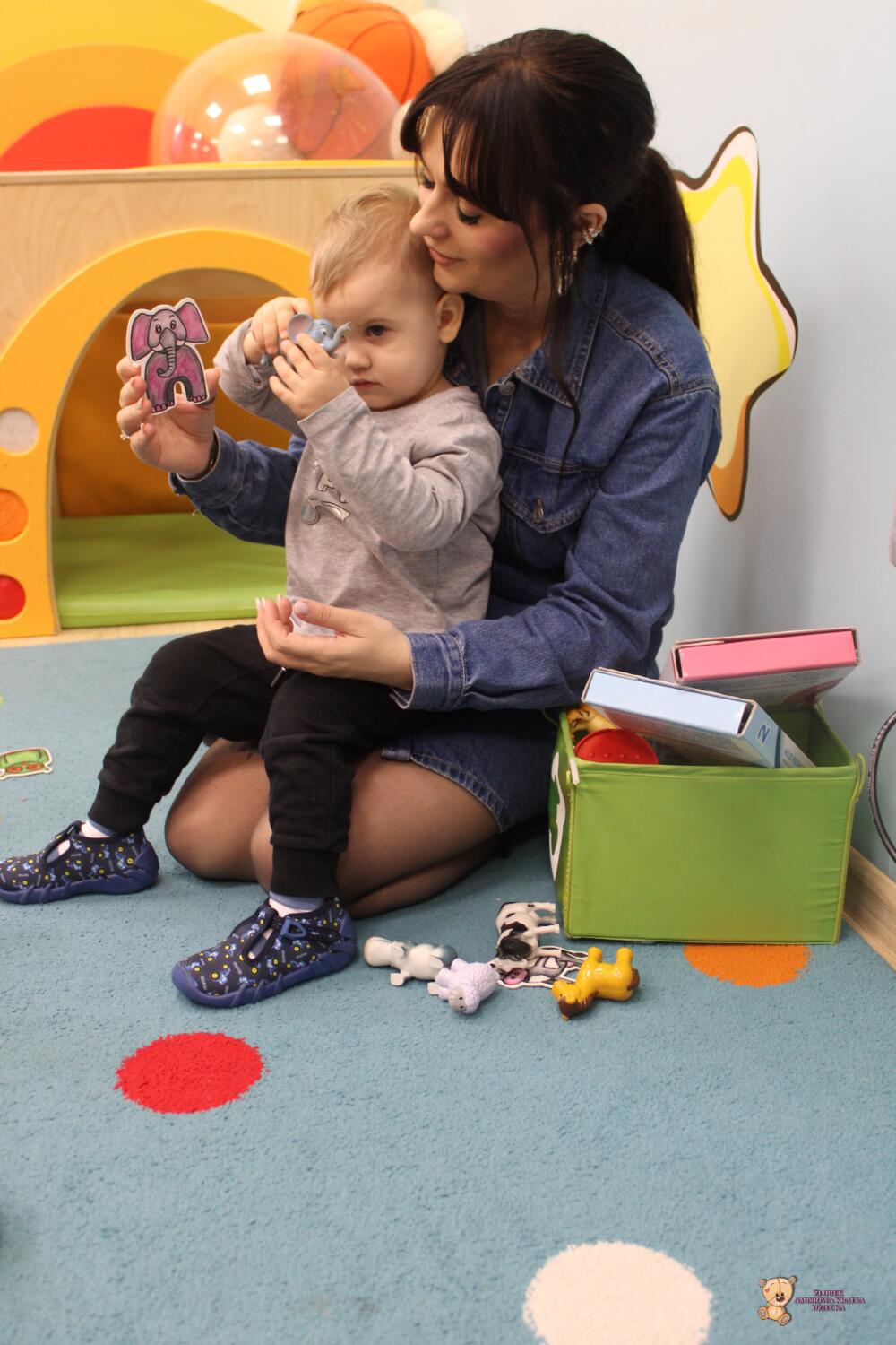 Dziś zwierzaki – moje pierwsze słowa. Uczyliśmy się polecenia pokaż taki sam . Dzieci wybierały zwierzęta które miały przedstawione na kartonikach próbując je nazywać