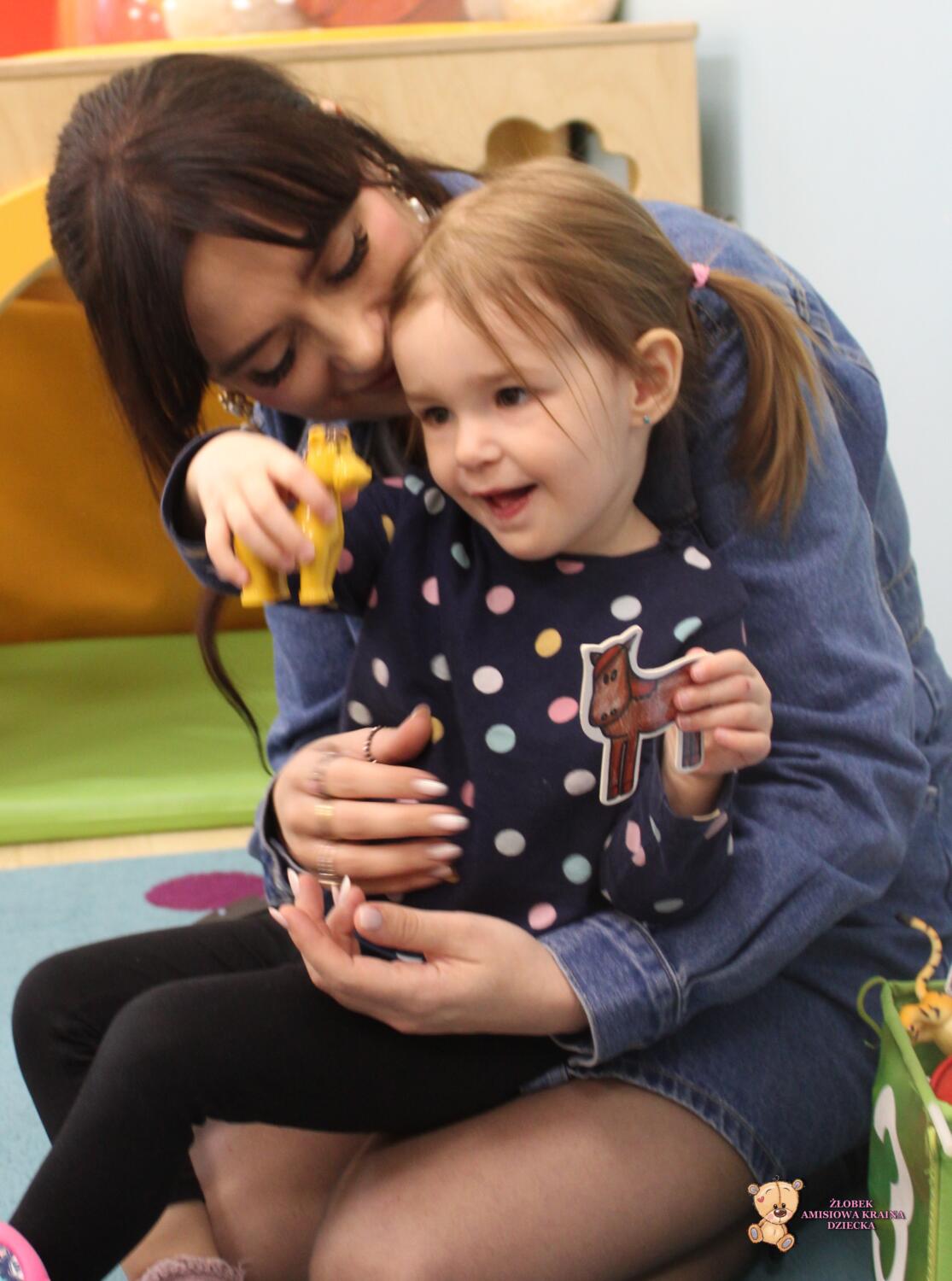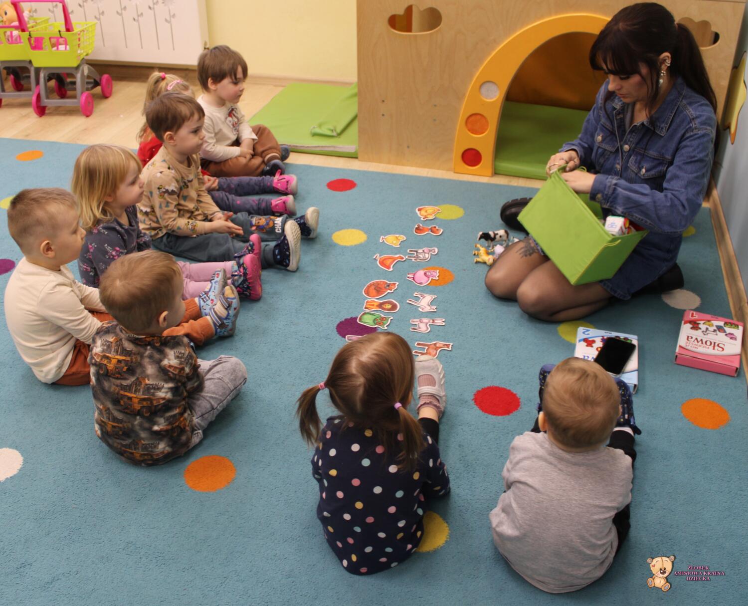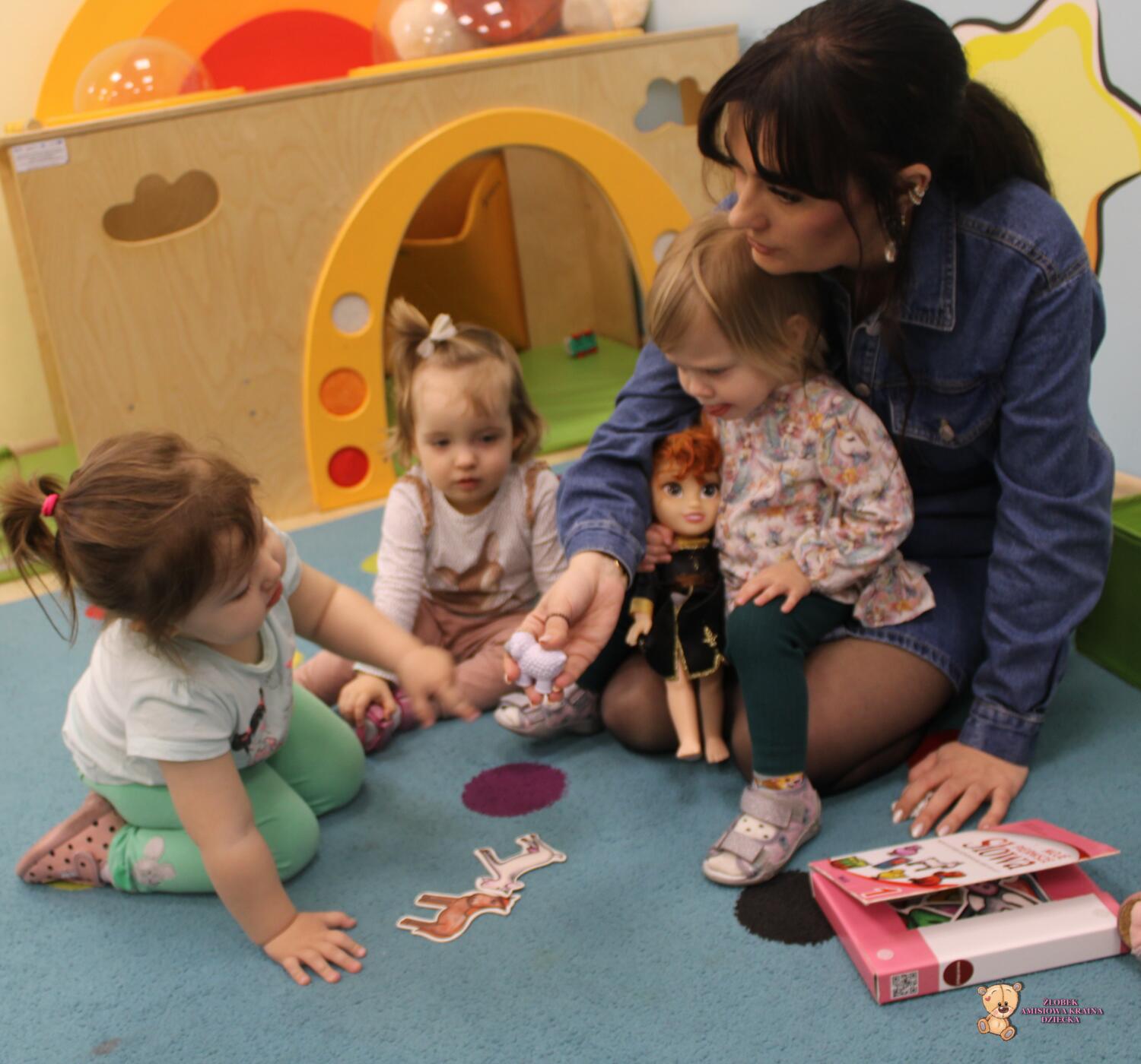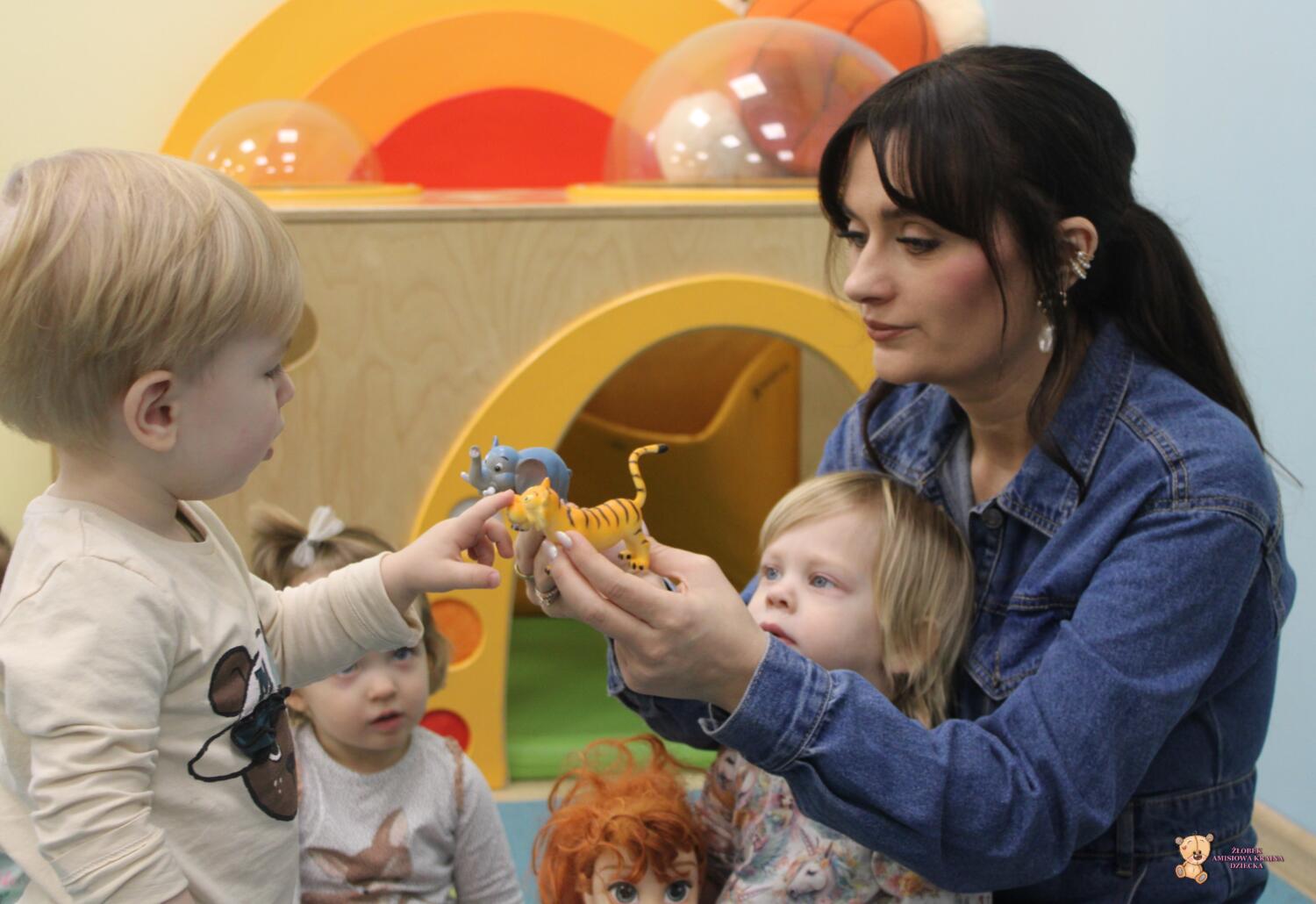 Dziś zwierzaki – moje pierwsze słowa. Uczyliśmy się polecenia pokaż taki sam . Dzieci wybierały zwierzęta które miały przedstawione na kartonikach próbując je nazywać