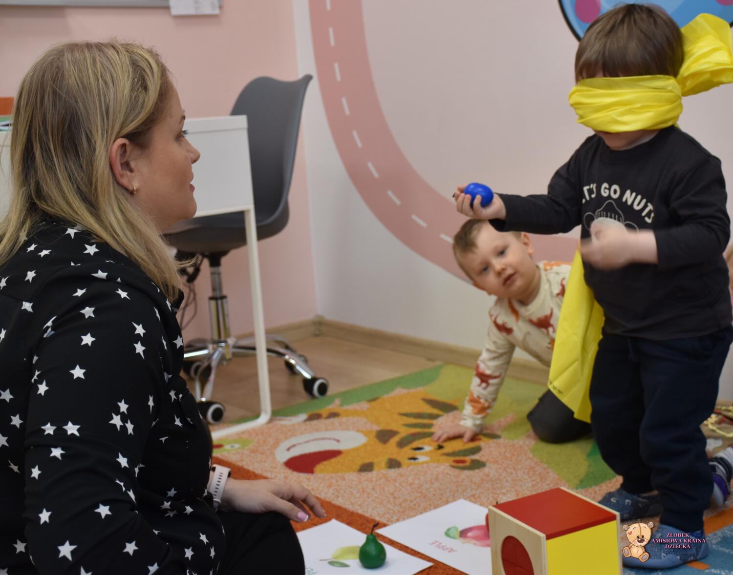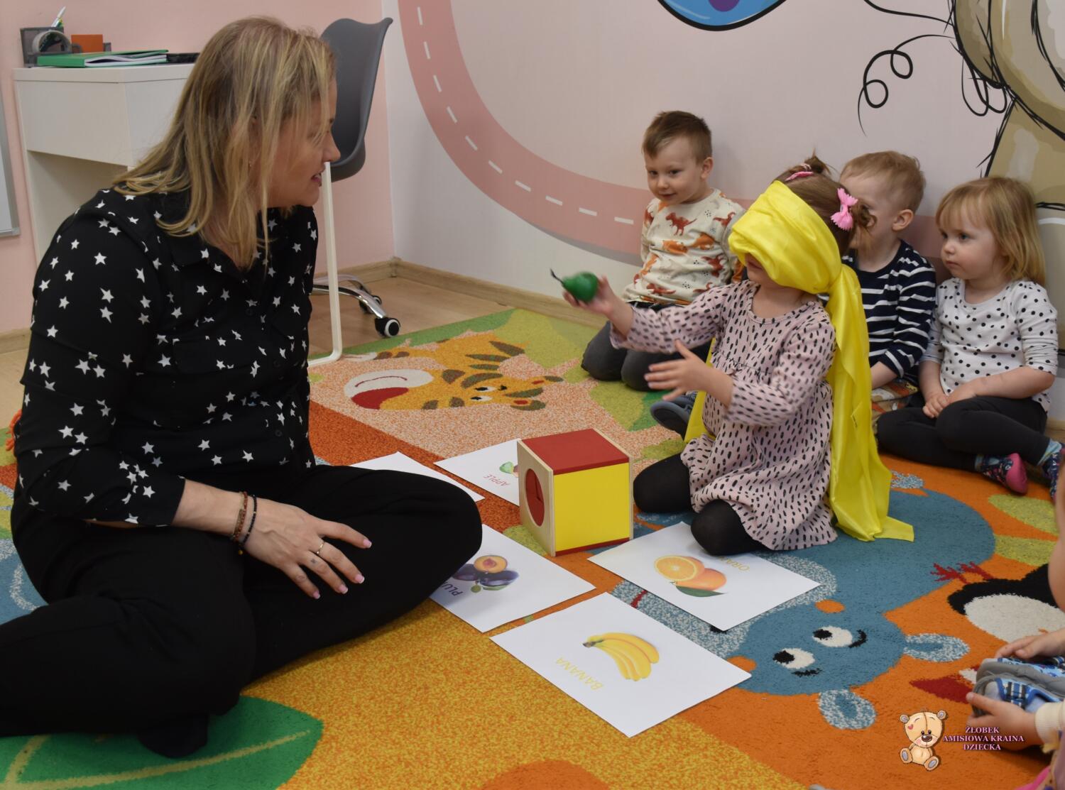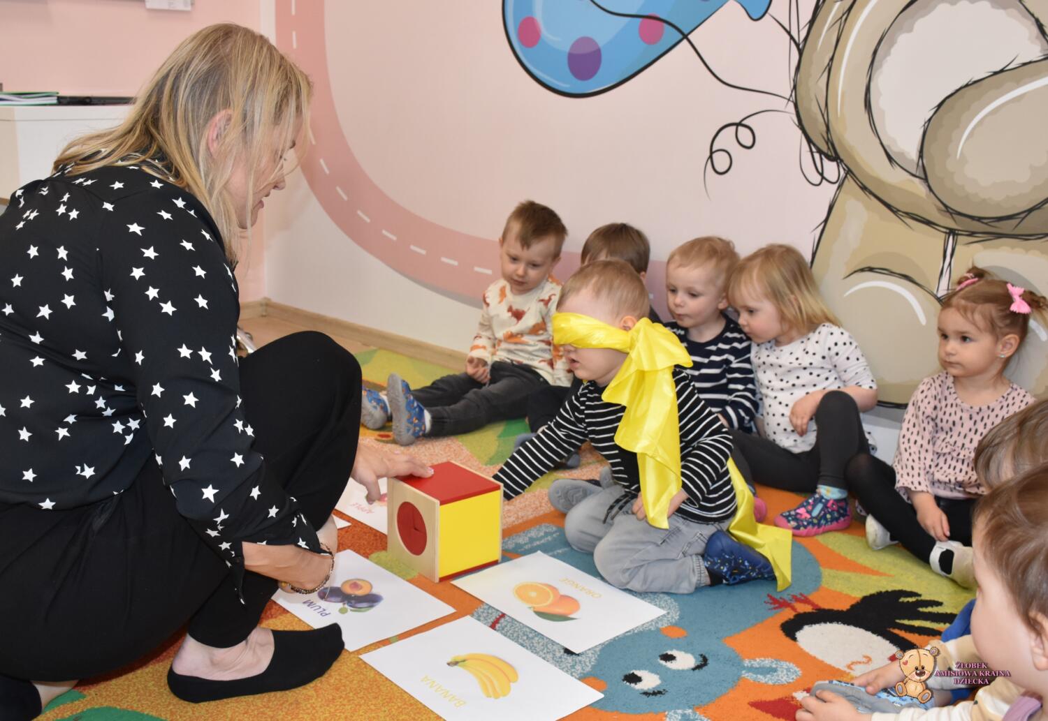 i opisywaliśmy ich kolor. Następnie mieliśmy za pomocą dotyku odgadnąć i dopasować owoc do obrazka.