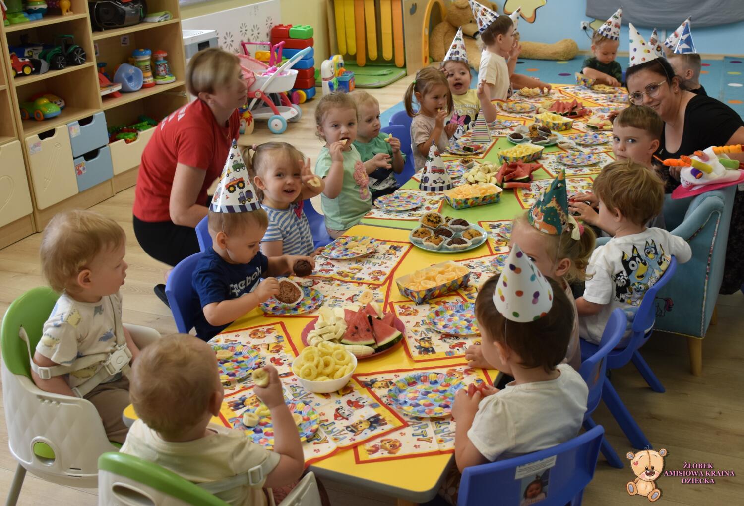 Dziś u nas w żłobku odbyły się urodzinki Ignasia, były śpiewy i pyszny poczęstunek. Dzieci oczywiście pięknie zaśpiewały Sto Lat i życzyły samych wspaniałości dla naszego kolegi Ignacego! Jeszcze raz wszystkiego najlepszego i dużo uśmiechu!! 😉