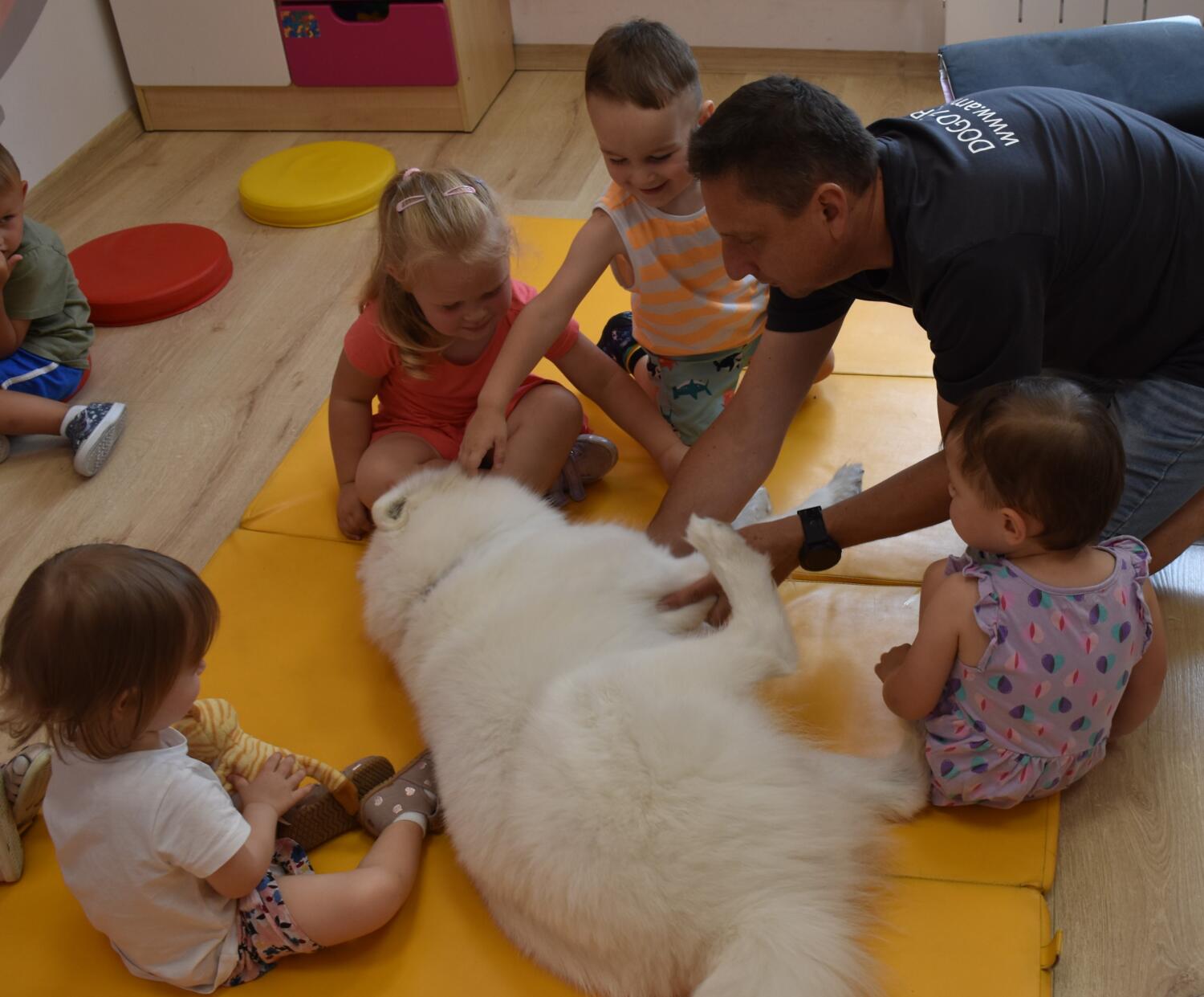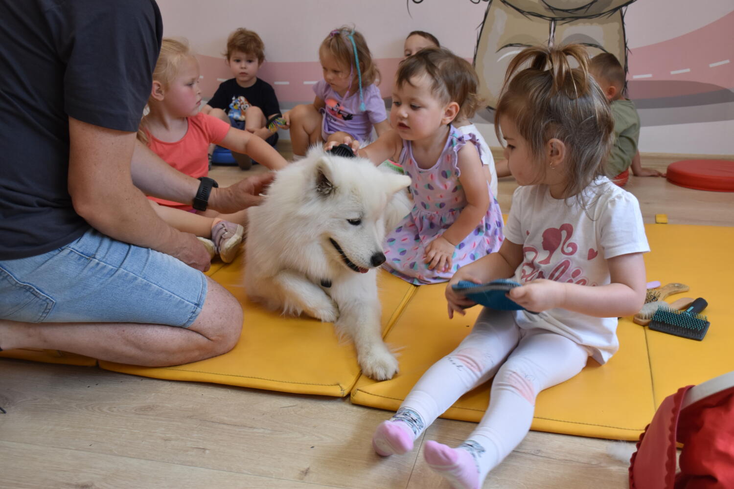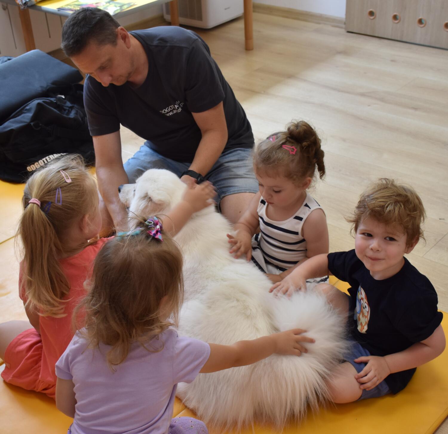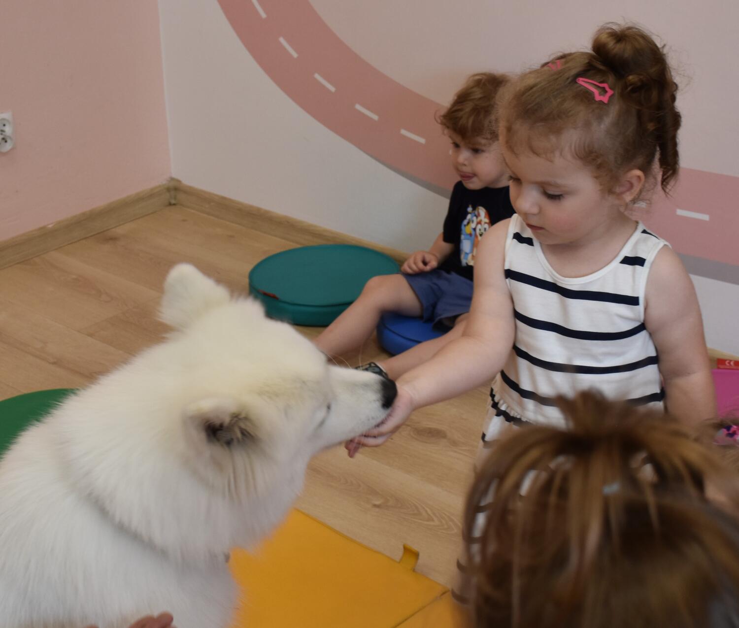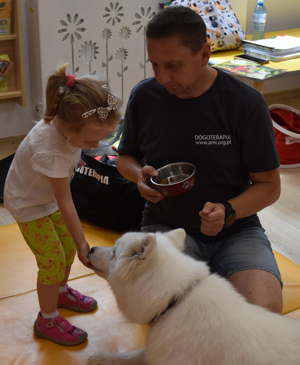 Na dzisiejszych zajęciach z Dogoterapii dzieci przypomniały sobie o bezpiecznym kontakcie z psem. Amisie pięknie się przywitały i zaopiekowały śliczną „Juką”. Starannie ją wyczesały, a na koniec nakarmiły 😉