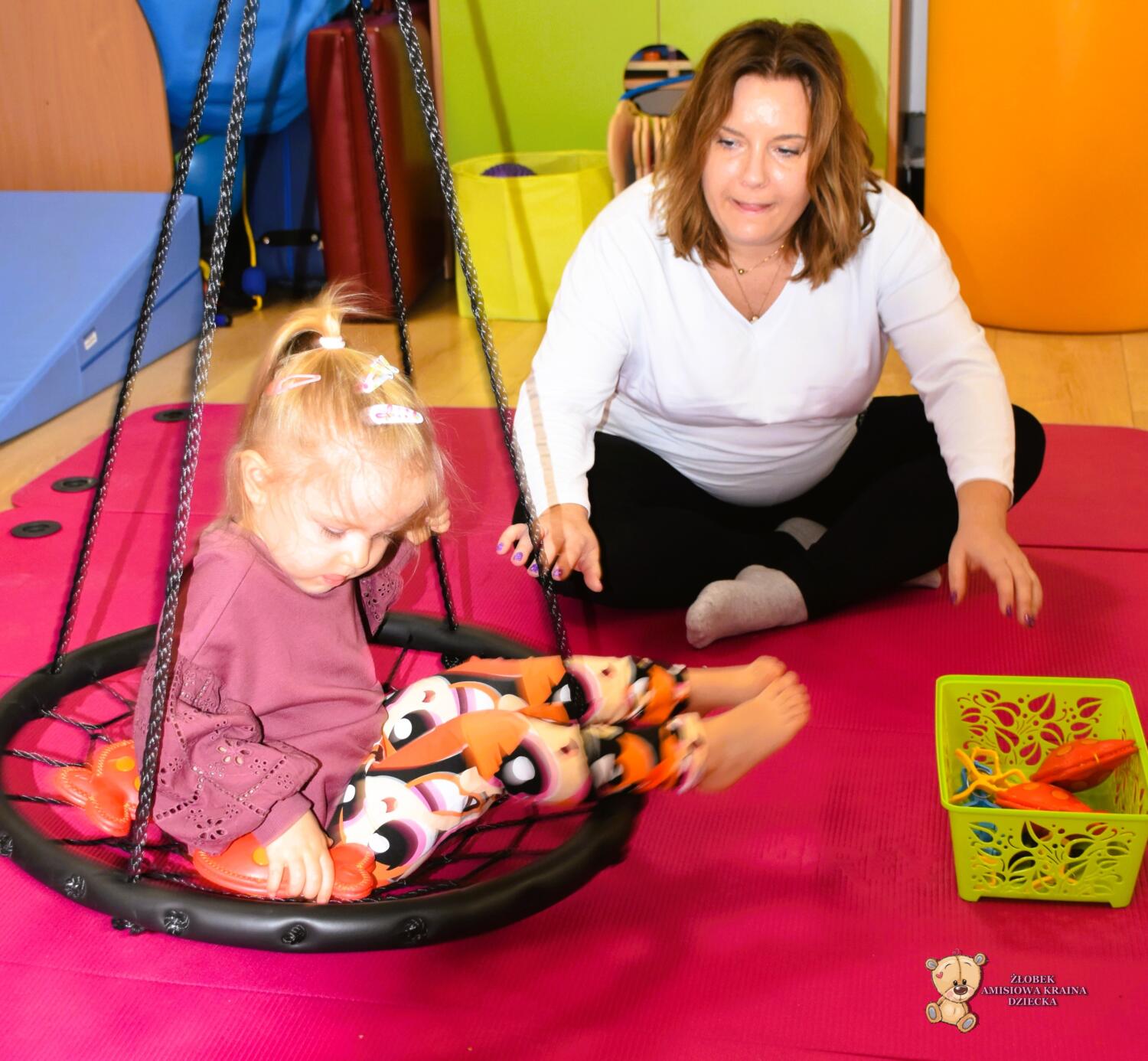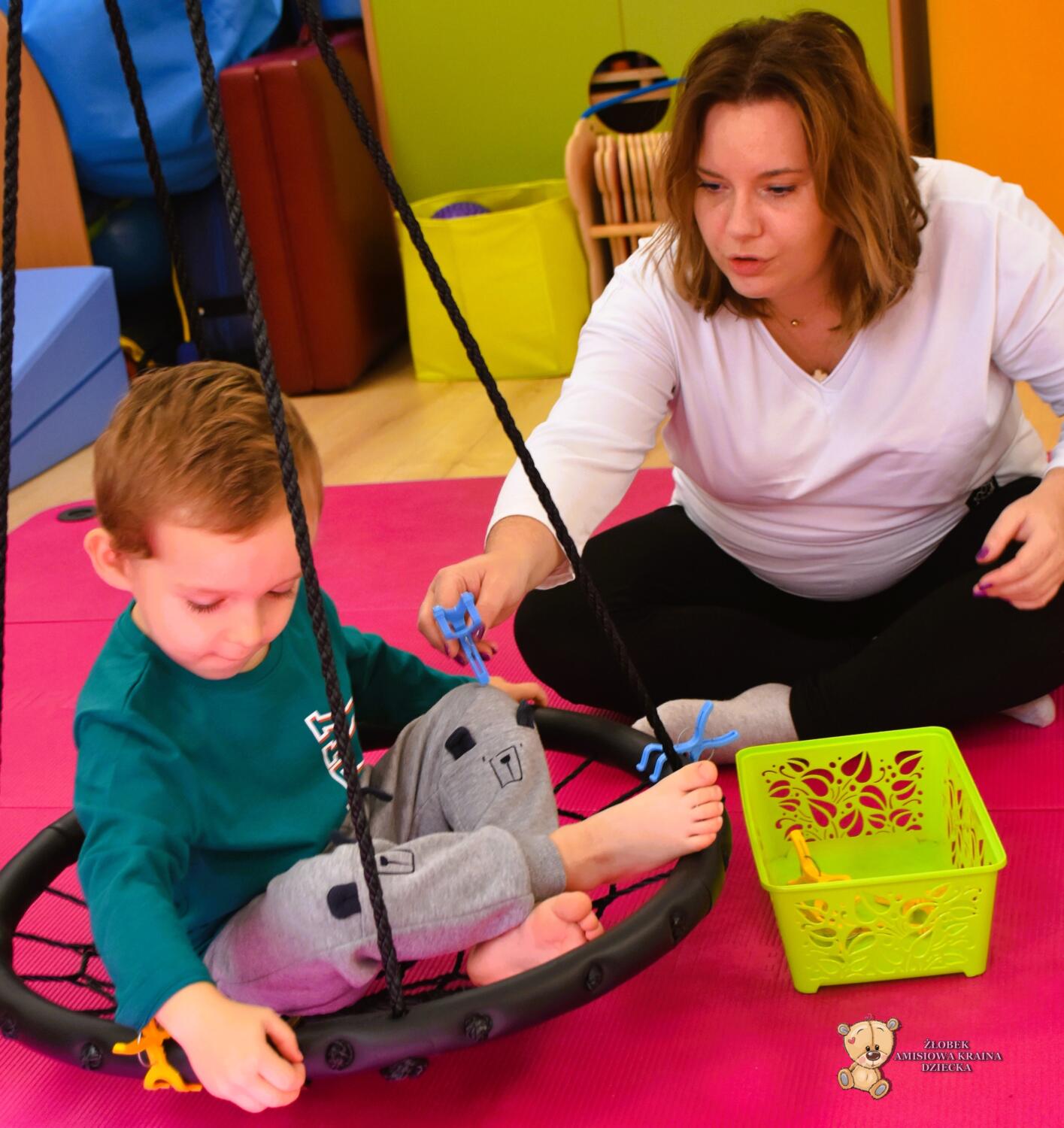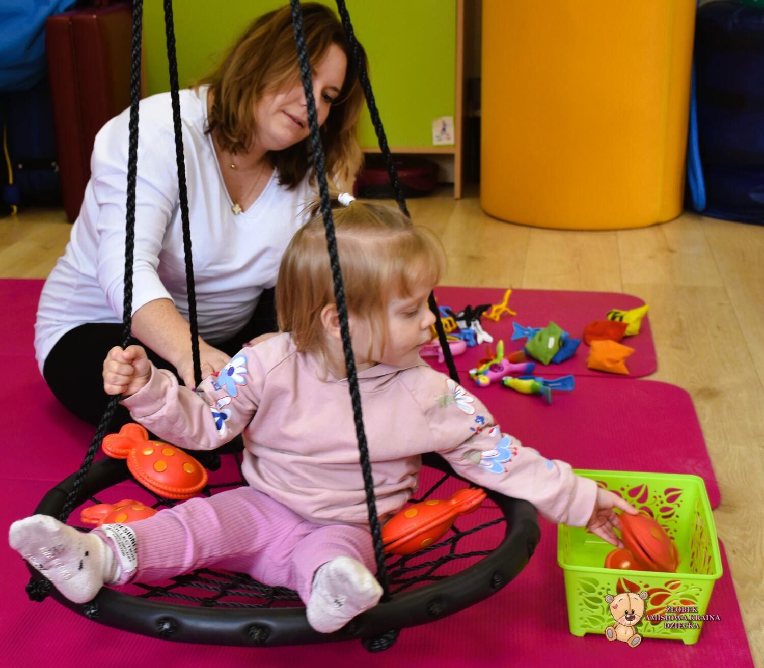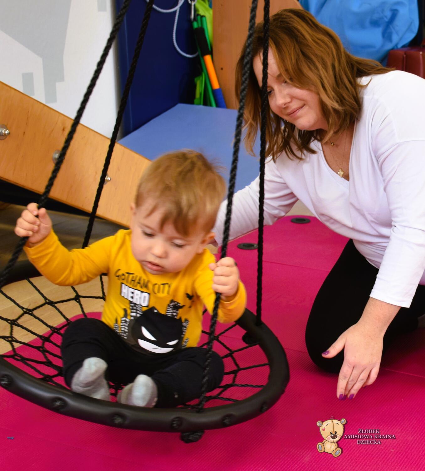 Dziś na zajęciach Integracji Sensorycznej stymulowaliśmy układ przedsionkowy na bocianim gnieździe. Amisiaki uczyły się wejść na huśtawkę, przyjąć prawidłową i komfortową pozycję ciała.Ciocia wprowadzała huśtawkę w ruch a Amisiaki wykonywały proste zadania manipulacyjne,koordynacyjne, precyzyjne. Podczas huśtania trzeba było utrzymać równowagę a na koniec bezpiecznie z niej zejść. Amisiaki lubią zajęcia na sprzętach podwieszanych, mają frajdę i super zabawę. Brawo!