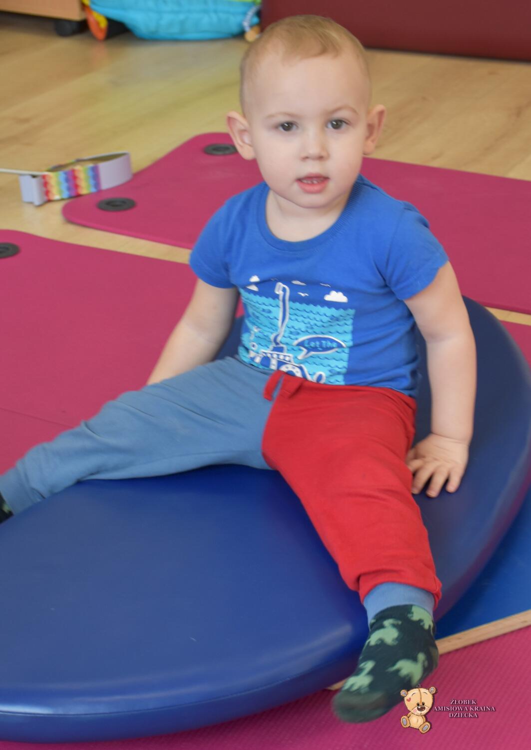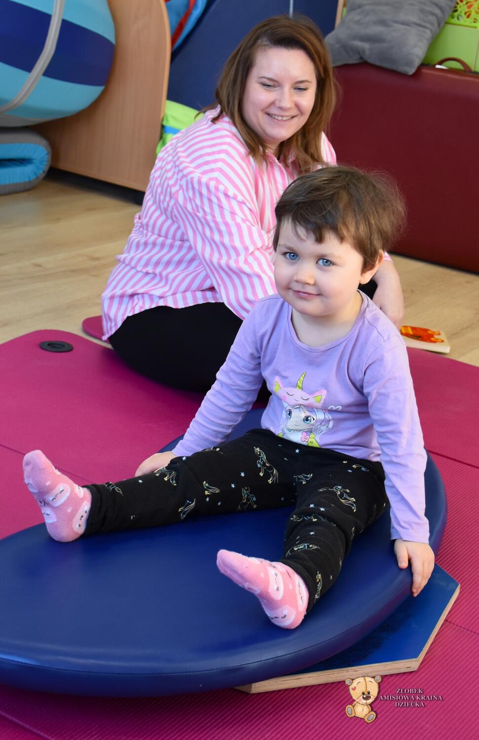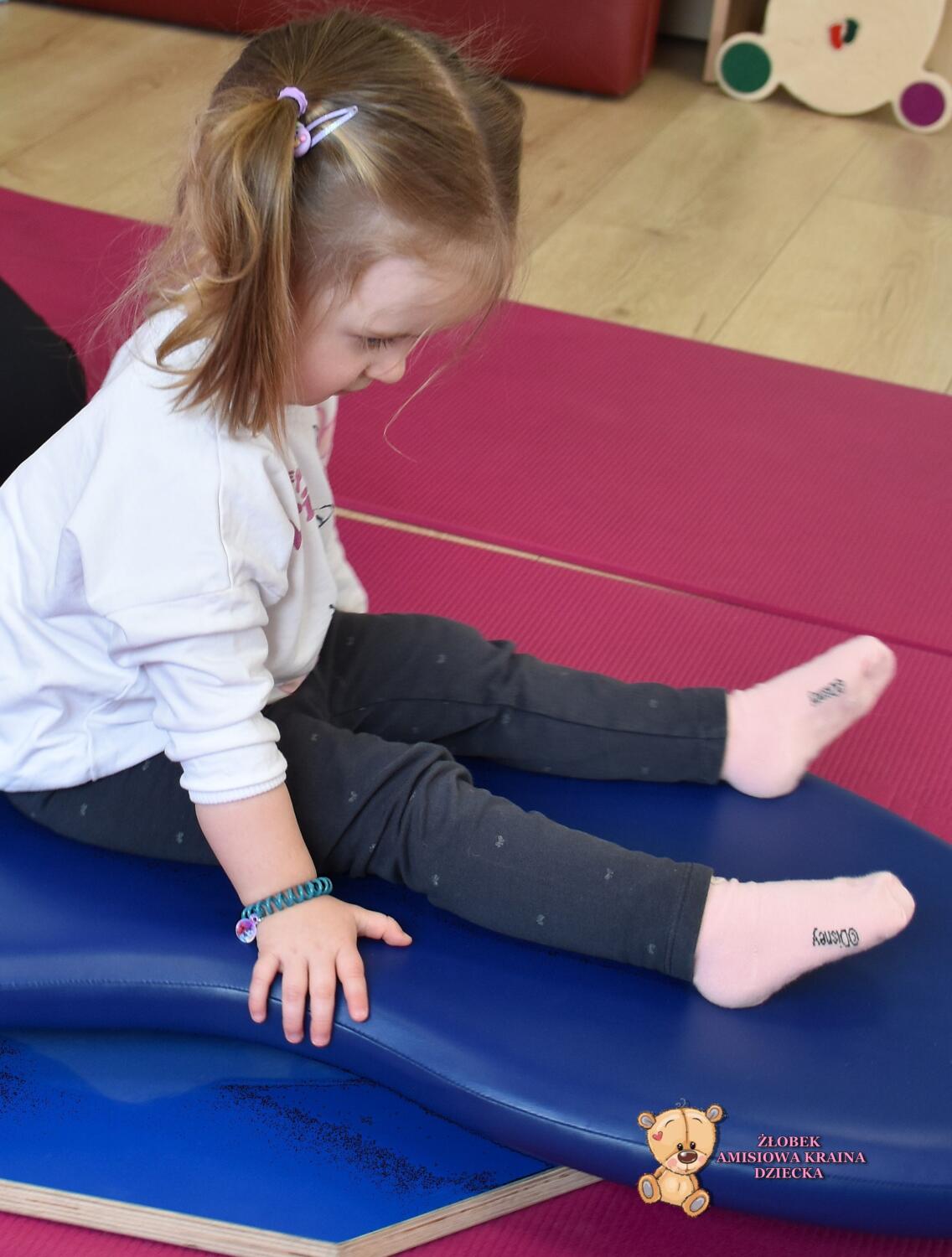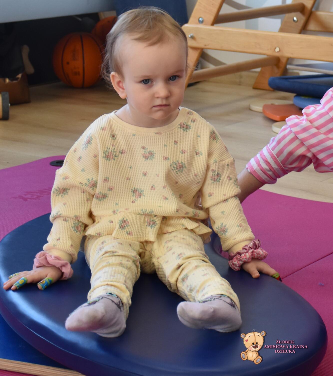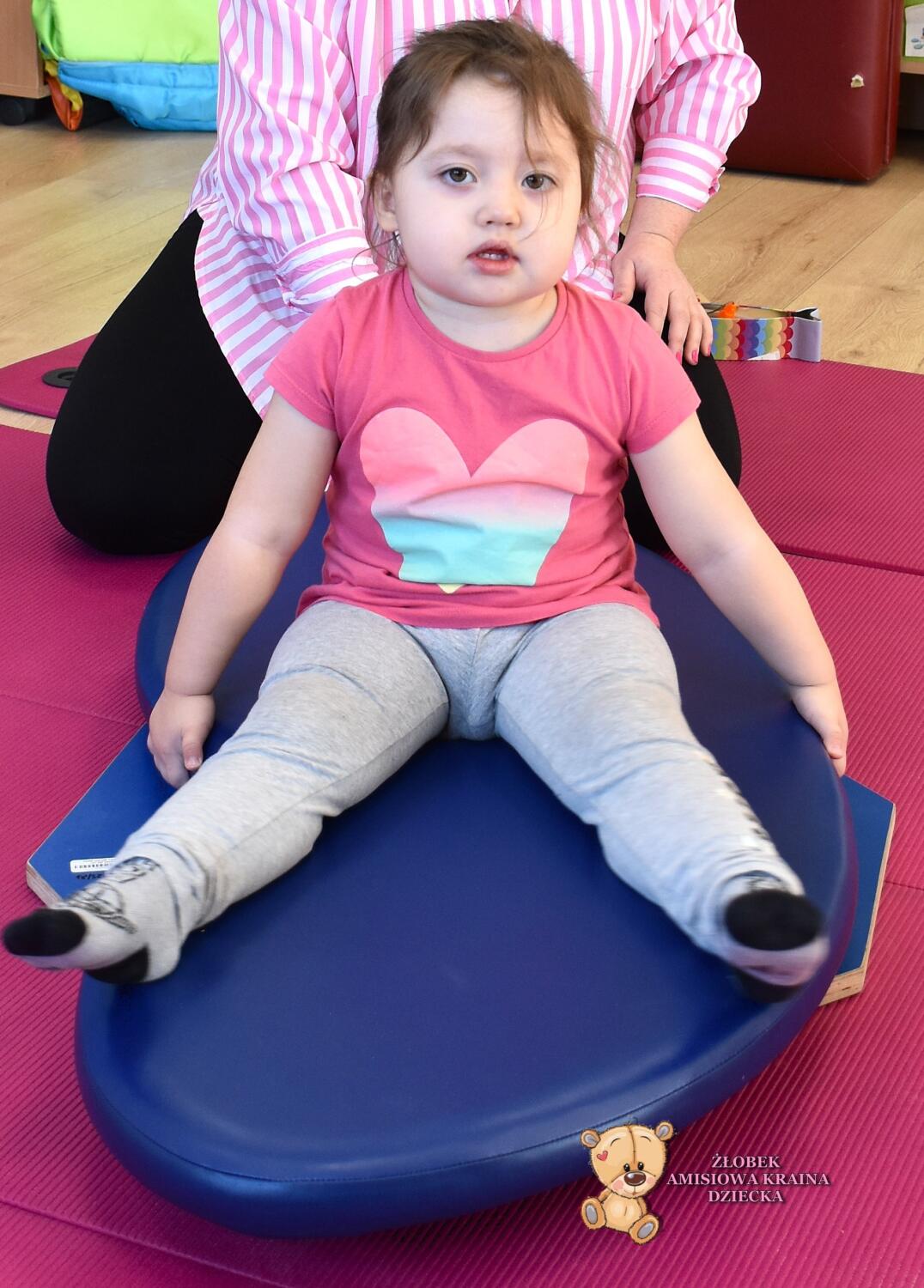 Dziś na zajęciach Integracji Sensorycznej Amisiaki ćwiczyły na desce rotacyjnej. Ciocia wprowadzała nas w ruch obrotowy w siadzie, leżeniu na plecach i brzuchu. Każdy Amisiak miał do wykonania zadanie rozwijające koordynację oko ręką, motorykę małą oraz współpracę obu rąk. Amisiaki spisały się na medal. Wspaniale!