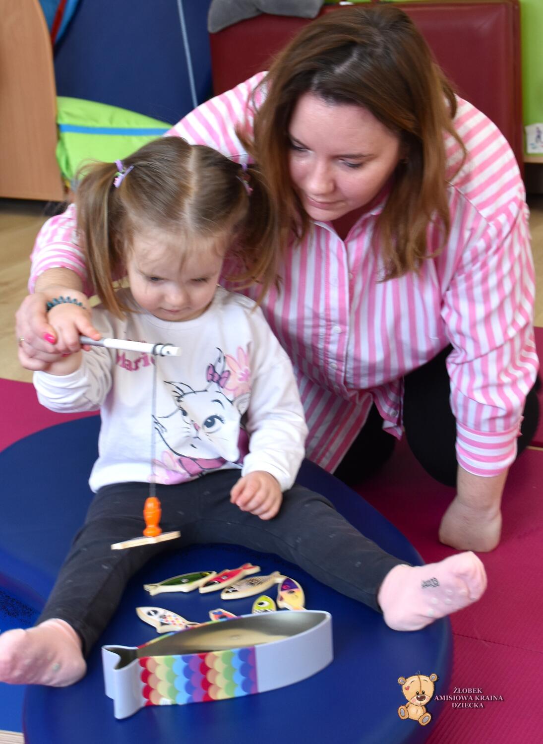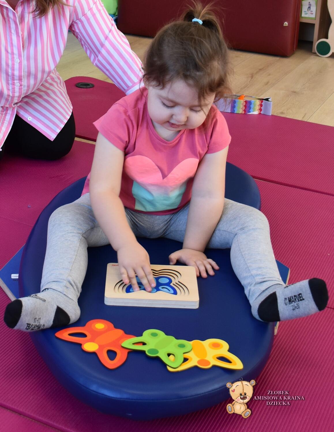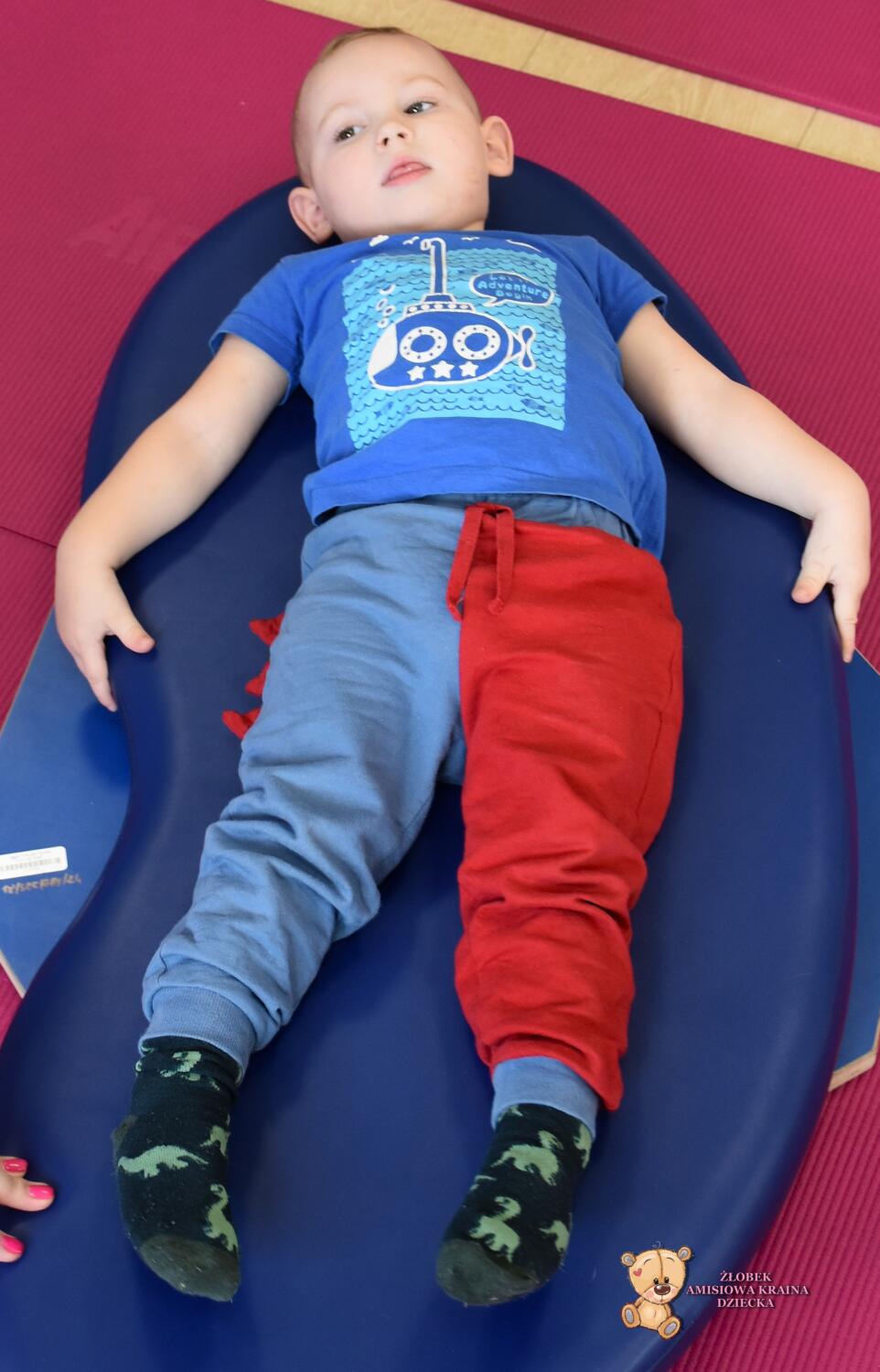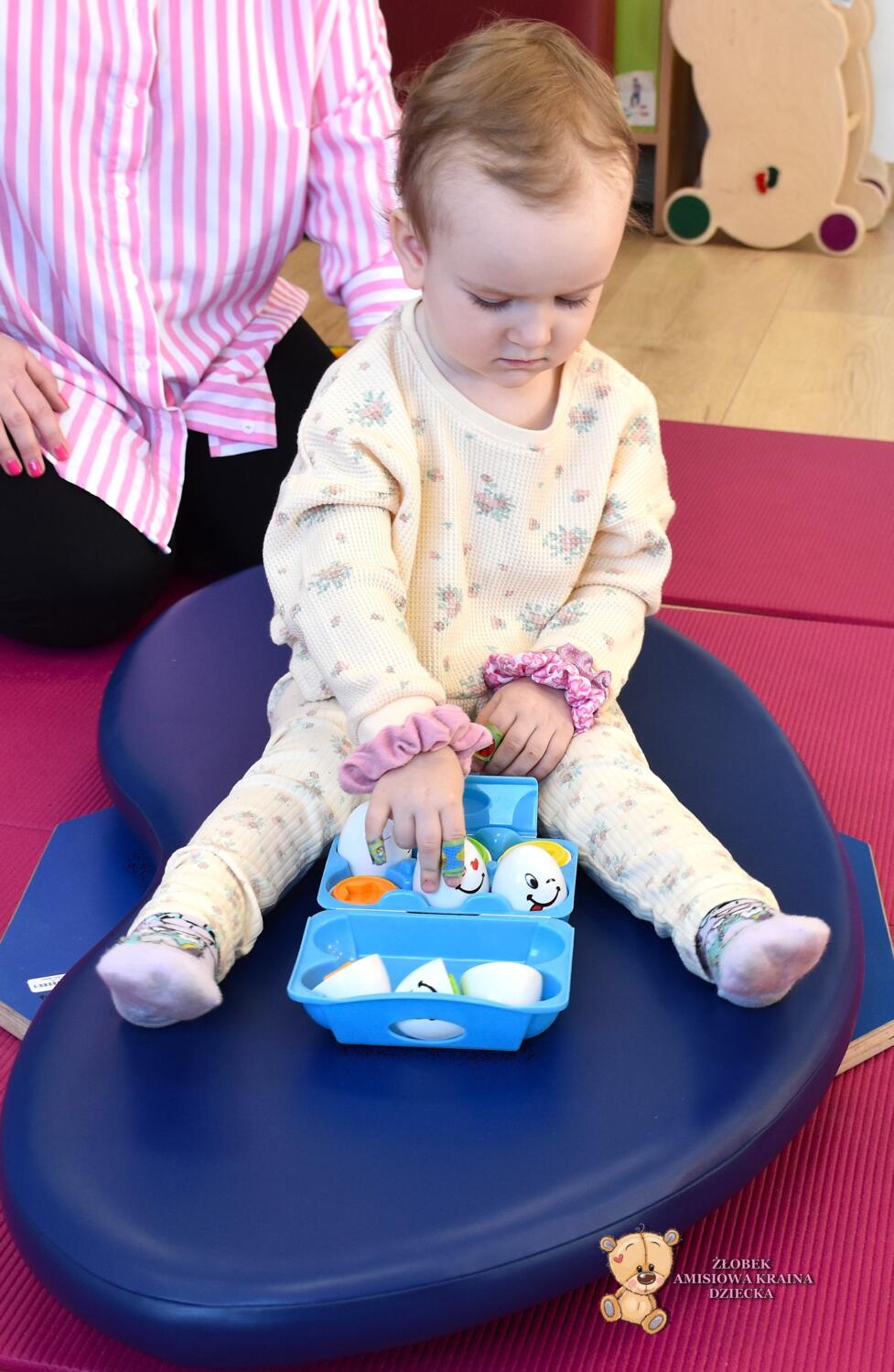 Dziś na zajęciach Integracji Sensorycznej Amisiaki ćwiczyły na desce rotacyjnej. Ciocia wprowadzała nas w ruch obrotowy w siadzie, leżeniu na plecach i brzuchu. Każdy Amisiak miał do wykonania zadanie rozwijające koordynację oko ręką, motorykę małą oraz współpracę obu rąk. Amisiaki spisały się na medal. Wspaniale!