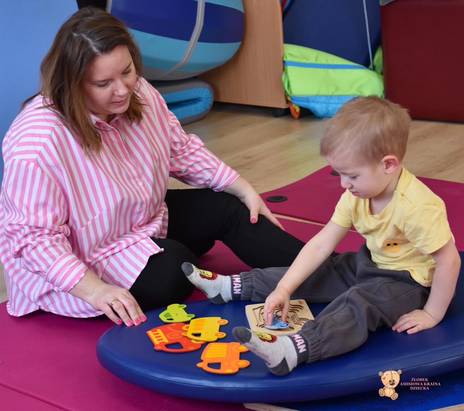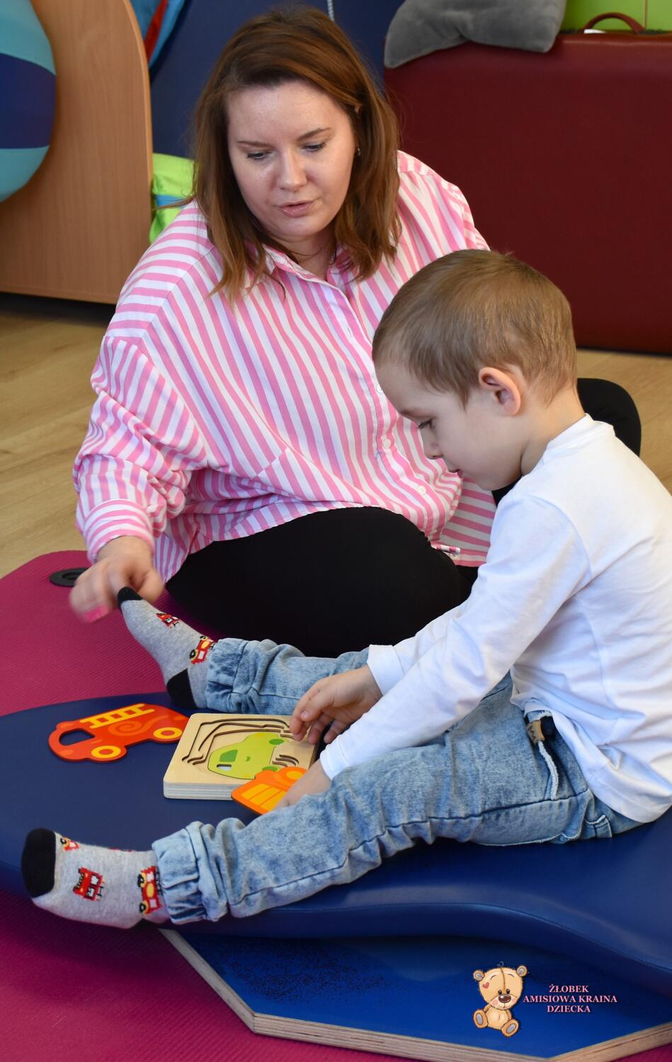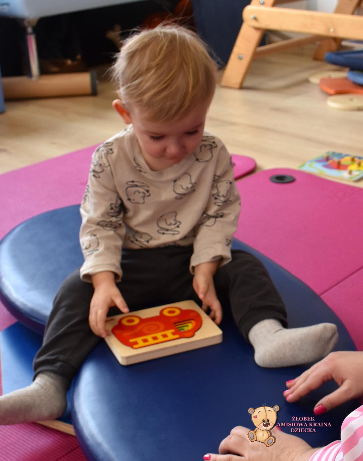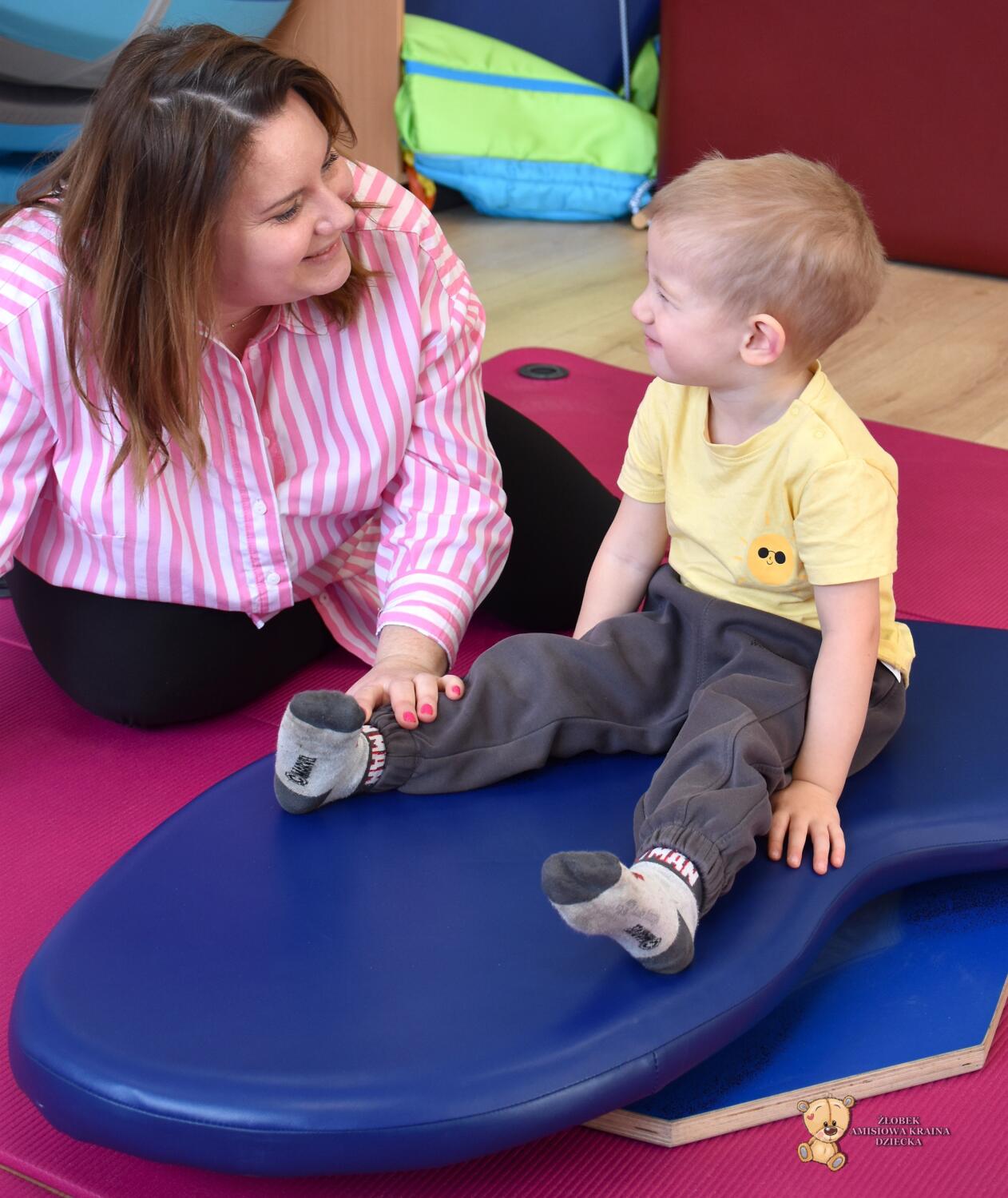 Dziś na zajęciach Integracji Sensorycznej Amisiaki ćwiczyły na desce rotacyjnej. Ciocia wprowadzała nas w ruch obrotowy w siadzie, leżeniu na plecach i brzuchu. Każdy Amisiak miał do wykonania zadanie rozwijające koordynację oko ręką, motorykę małą oraz współpracę obu rąk. Amisiaki spisały się na medal. Wspaniale!