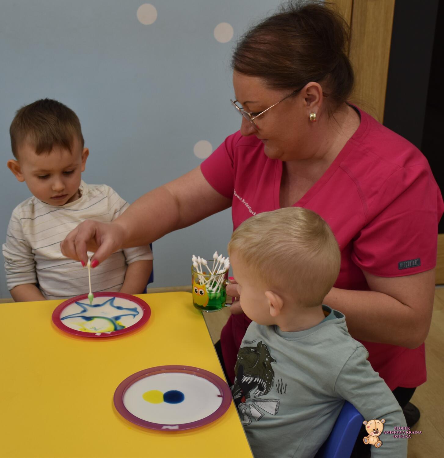 Dziś w Amisiowej krainie był dzień eksperymentów. Ciocia pokazała Nam jak wybucha wulkan,, tańczące kolory na mleku. Wszyscy z zaciekawieniem oglądali i robili eksperymenty. To był super dzień ![]()