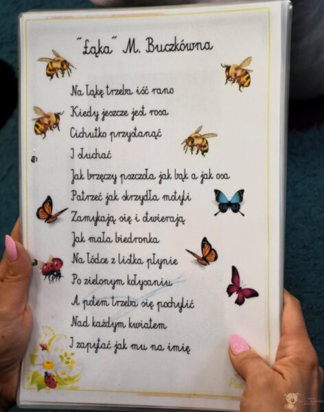 Zgodnie z Naszym tematem tygodnia pt. ” Wiosenna łąka” na porannym kręgu omawialiśmy z Amisiakami co i kogo możemy spotkać na łące 🙂 🐝🦗🕷🐞🐌🦋🐇🌻🌸🐸 Na koniec Ciocia przeczytała nam wierszyk pt.” Łąka”.