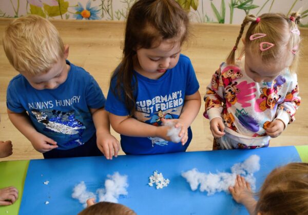 Niebo uzupełniły miękkimi chmurkami wykonanymi z waty, co dodało pracy przestrzennego charakteru![]()