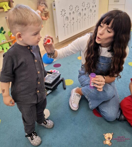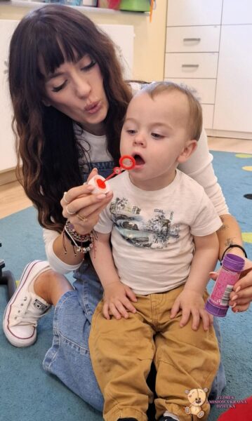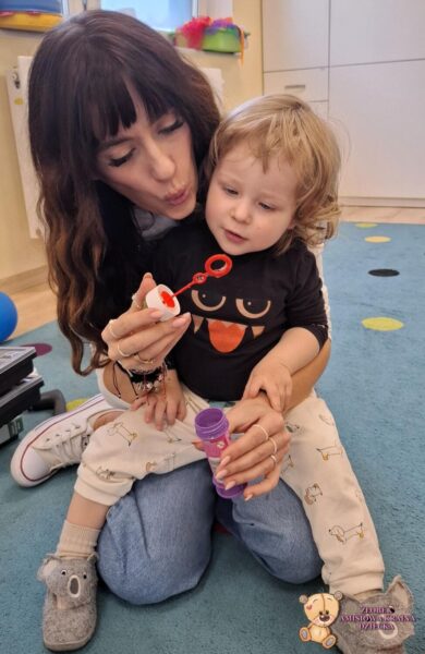 W dniu wczorajszym odwiedziła nas ciocia Marta. Przywitaliśmy się ćwiczeniami oddechowymi puszczając bański . Następnie ciocia pomasowała nas neurowibratorem który ma za zadanie polepszyć sprawność naszych narządów artykulacyjnych. Na koniec poczytaliśmy pajdohistoryjki i odpowiadaliśmy na pytania
