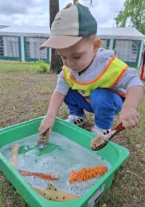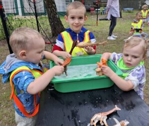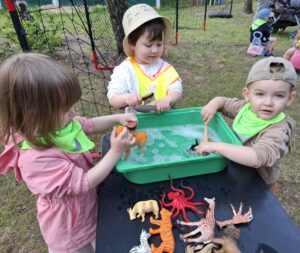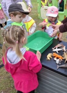 Dzieci z zaangażowaniem myły figurki zwierzątek . Pozostały czas spędziły aktywnie ma placu zabaw!