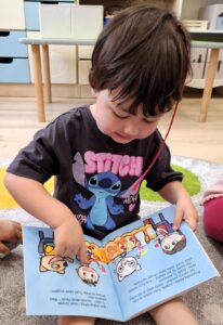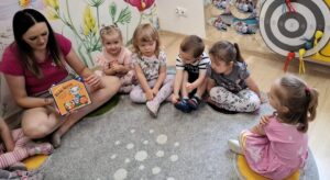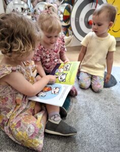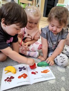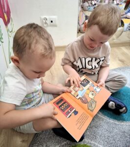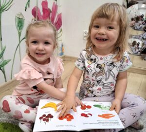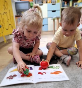 Na dzisiejszych zajęciach Bajkoterapii czytaliśmy książeczkę pt.” Kicia Kocia Witaminowe Przyjęcie”. Dzieci uważnie słuchały, a następnie odpowiadały na pytania zadawane przez Ciocię. Dopasowywaliśmy też owoce i warzywa które były ukazane w książeczce. Amisiaki świetnie sobie poradziły! 🙂