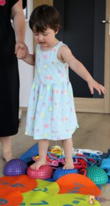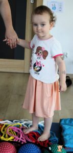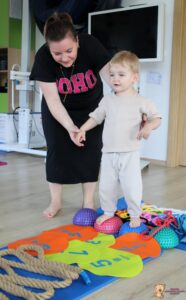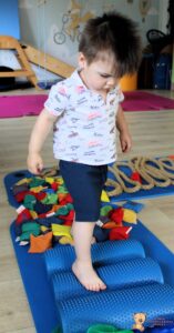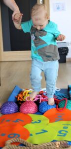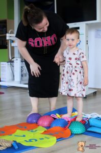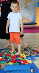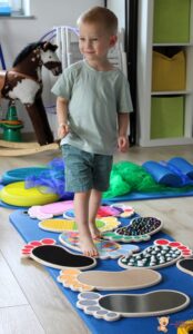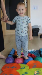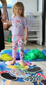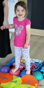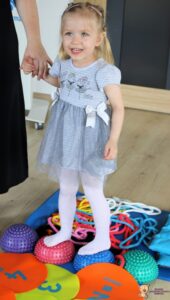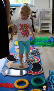 Dziś na zajęciach Integracji Sensorycznej Amisiaki ćwiczyły na boso. Stymulowalismy czucie powierzchniowe i głębokie naszych stóp oraz rozwijaliśmy umiejętności równoważne. Dzięki takim aktywnościom wzmacniamy mięśnie stóp oraz postawę ciała, także wspomagamy koncentrację, wyciszenie, relaks. Warto chodzić na boso Amisiaki!