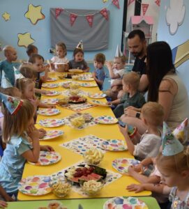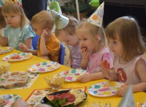 Wczoraj w naszym żłobku odbyły się urodzinki naszego kolegi Frania, który kończył 2 latka. Oczywiście zaśpiewaliśmy znane nam piosenki/pokazywanki oraz Sto Lat. Po śpiewankach udaliśmy się na pyszny poczęstunek przy którym odbyło się dmuchanie świeczek oraz wyboru drobnego upominku ;)) Sto lat Franiu!