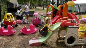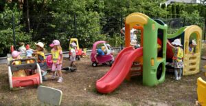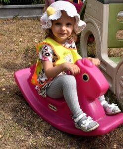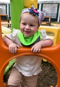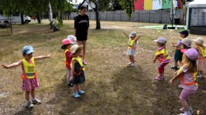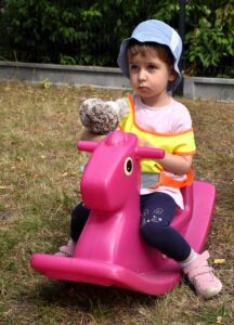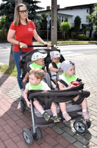Ćwiczyliśmy znajomość kolorów sygnalizatora oraz sprawne przechodzenie przez pasy. Po zajęciach udaliśmy się do ogrodu gdzie Amisie mogły się bawić wspólnie na placu zabaw a następnie odbyły się zajęcia rytmiczne. Dzieci z ciocią bawiły się do piosenek, rytmicznie klaszcząc i tupiąc nóżkami