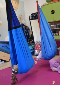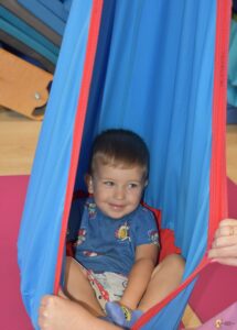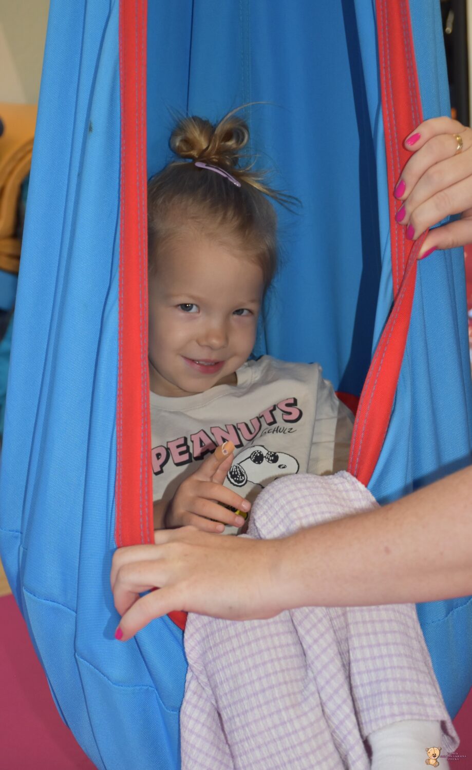 Dziś na zajęciach Integracji Sensorycznej Amisiaki relaksowały się w hamakach. Mogliśmy się w niech położyć, oprzeć głowę, schować nóżki, poczuć przyjemny docisk. Ciocia łagodnie nas huśtała, byly też delikatne obroty. Amisiaki czuły się komfortowo i bezpiecznie. Stymulacja w hamaku dała dużo radości, zadowolenia i wyciszenia. To były fajne zajęcia.