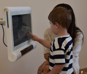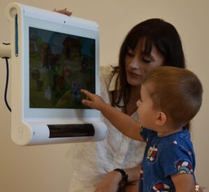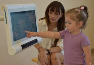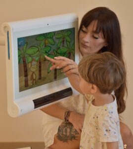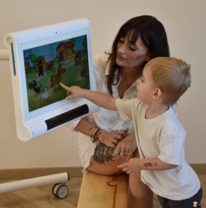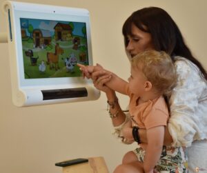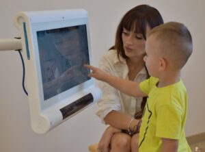 Dziś ciocia zabrała nas na górę i pracowaliśmy na sprzęcie C-eye. Młodsi z nas pokazywali zwierzątka i naśladowali ich odgłosy a straszaki mieli trudniejsze zdanie bo trening słuchowy. To było wyzwanie ! Do zobaczenia za tydzień