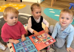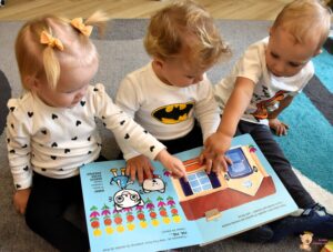 Na zajęciach z Bajkoterapii, ciocia Monika przeczytała dzieciom bajkę pt. : Kicia Kocia, bardzo fajna rodzina”. Dzieci z zainteresowanie słuchały, a następnie odpowiadały na pytania. Dzieci z zaciekawieniem obejrzały również ilustracje znajdujące się w książeczce. 🙂 To był fajny czas!📖