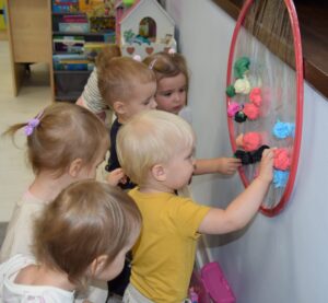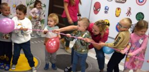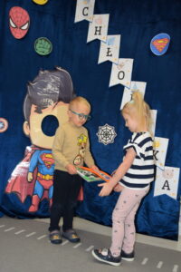 Dziewczynki złożyły chłopcom serdeczne życzenia oraz wręczyły drobne upominki. Na zakończenie wszyscy wspólnie bawili się przy muzyce i słodkim poczęstunku.