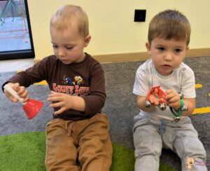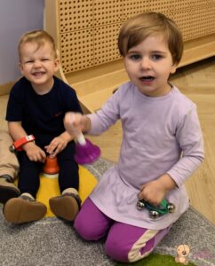 Dziś na terapii przez sztukę uczestniczyliśmy w zajęciach muzycznych z wykorzystaniem dzwonków, które miały na celu wprowadzenie dzieci w świat dźwięków poprzez zabawę i naturalną aktywność ruchową. Podczas zajęć maluchy poznały wygląd oraz brzmienie dzwonków, uczyły się, jak je prawidłowo trzymać i uderzać, aby wydobyć dźwięk. Dzieci eksperymentowały z różną siłą uderzenia, tempem oraz rytmem, co wspiera rozwój słuchu muzycznego oraz koordynacji wzrokowo-ruchowej. 🙂