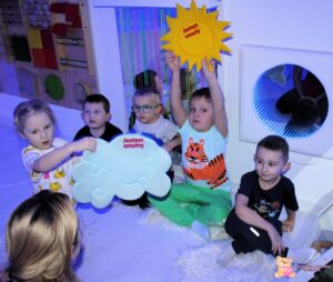 Zajęcia w Sali Doświadczania Świata to zawsze wspaniała zabawa! ✨ Dziś nasze Amisie poznawały różne warunki atmosferyczne ☀️🌧️⛈️