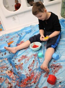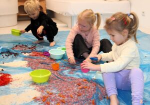 Dziś na zajęciach Sensoplastyki AMIsie bawiły sie makaronem i wszelkimi artykułami sypkimi.