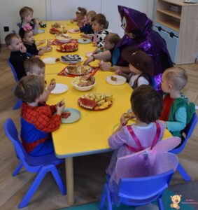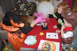 Dziś w Naszym Żłobku nie zabrakło magii, czarów, dzieci przebranych w piękne stroje, słodkiego poczęstunku i świetnej zabawy!🧙♀️🔮✨🥰🗝️🪄