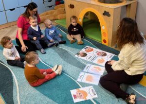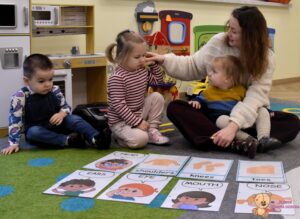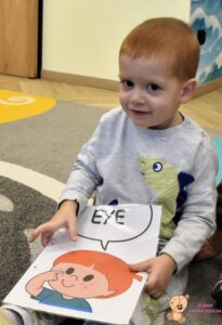 W miesiącu styczniu podczas zajęć z języka angielskiego dzieci poznają części ciała. Temat ten realizujemy w formie zabawy, ruchu i muzyki, aby nauka była dla maluchów naturalna i radosna. Pierwsze zajęcia odbyły się dziś i wprowadzały nowe słownictwo poprzez znaną i lubianą piosenkę „Head, Shoulders, Knees and Toes”. Dzieci z dużym zaangażowaniem wskazywały poszczególne części ciała, naśladowały ruchy oraz śpiewały razem z prowadzącym.