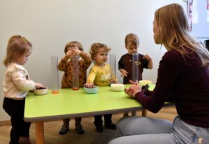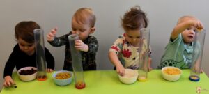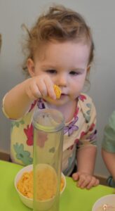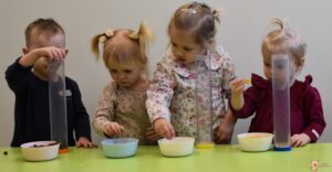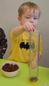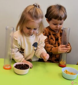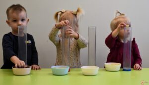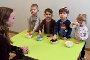 . Wrzucały produkty do przezroczystej tuby, obserwując, jak się mieszają i opadają, a także wsłuchując się w różne dźwięki ![]()