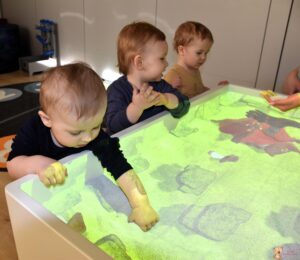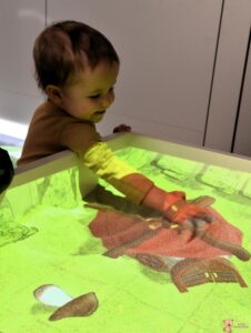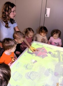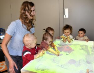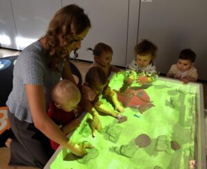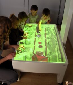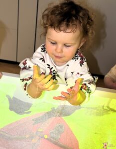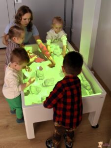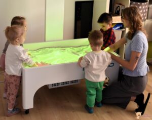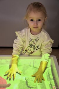 Dzisiaj podczas zajęć sensoplastycznych dzieci miały okazję skorzystać z nowego sprzętu – ImSand, czyli interaktywnej piaskownicy