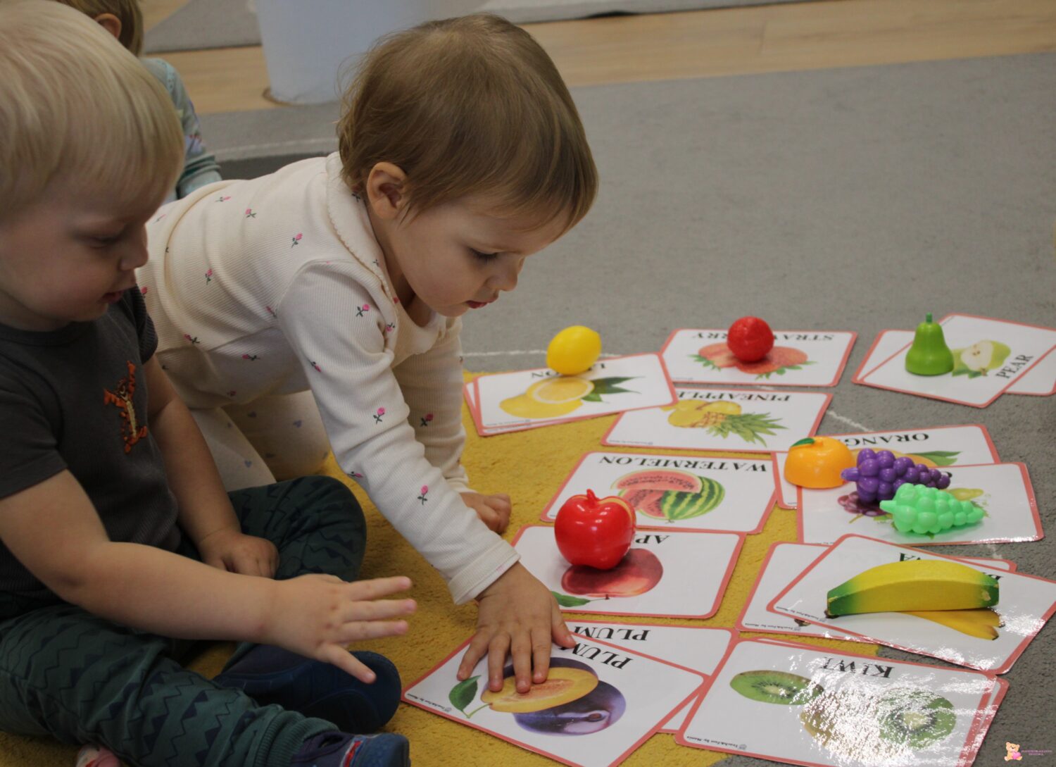 English fun with fruits! Amisie na zajęciach z języka angielskiego poznawały nazwy owoców! Dzieci wesoło śpiewały piosenkę ” I like applws, i like bananas”, dopasowywały owoce do obrazków i bawiły się w grę ” I like..”