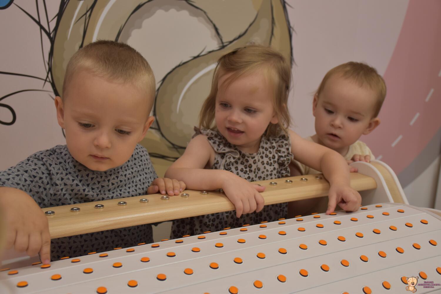 Na dzisiejszych zajęciach z muzykoterapii zaczęliśmy przygodę z musiconem. Ula-pacynka, która prowadziła zajęcia opowiedziała dzieciom o funkcjonowaniu instrumentu i sposobie gry. Dzieci stopniowo poznawały jego magiczną moc, kolejno odkrywając nowe tajniki. W kolejnym etapie pojawiła się część praktyczna, która sprawiła największą radość.