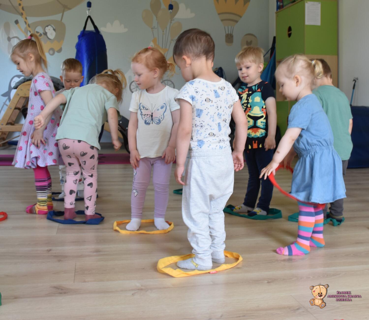 Dziś zabawy z szarfami rozwijające koordynację ruchową. Dzieci przekładały szarfy od góry do dołu przez głowę i całe ciało. Przeskakiwały do środka, przekładały szarfę za plecami z ręki do ręki. Później połączyliśmy się szarfami w pary i próbowaliśmy razem się poruszać to nie było łatwe. Następnie z kolorowych szarf utworzyliśmy koło i dzieci zamieniały się […]