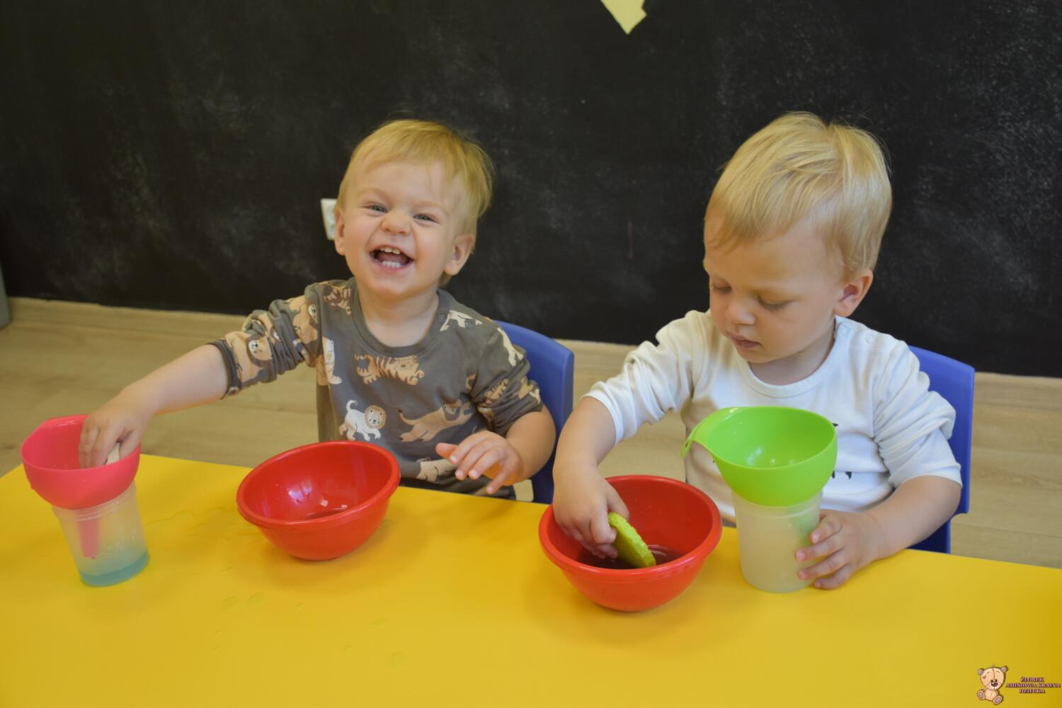 Dziś na zajęciach metodą Montessori Amisiaki za pomocą gąbki przelewały wodę z miski do kubeczka z wykorzystania lejka. Ćwiczyły swoje rączki, koordynację rękę-oko oraz koncentrację. Jedno jest pewne, Amisiaki uwielbiają zabawy z wodą!