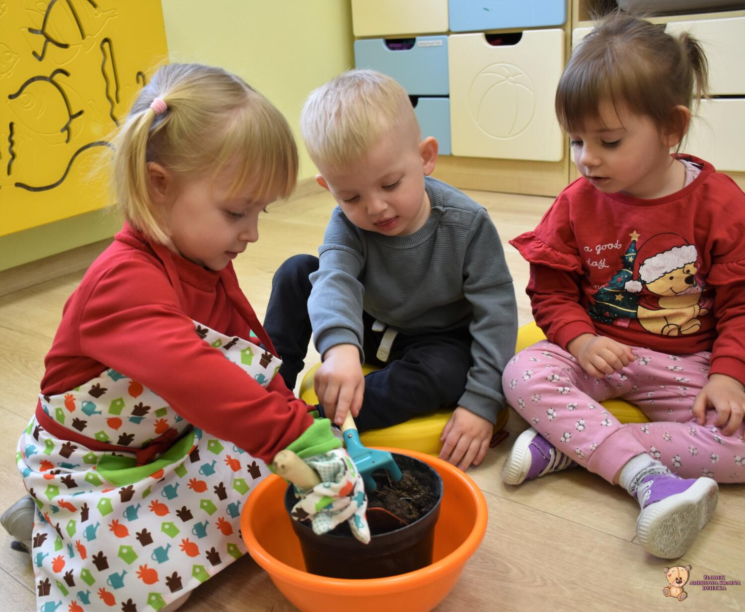Dzisiaj na Bajkoterapii AMIsiaki poznały bajkę „Zielony ogródek”. Opowiadaliśmy o pracach w ogródku,jak pomagają .Na koniec zasadziliśmy cebulkę i pietruszkę ,co sprawiło wiele radości.Kazdy z zaangażowaniem wykonywał pracę ogrodowe