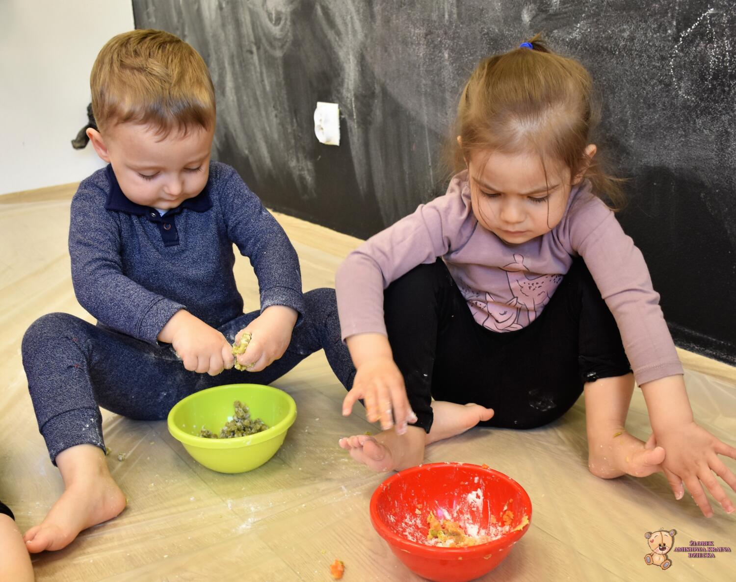 Dziś nasze Amisiaki ćwiczyły swoje rączki wykonując samodzielnie dwie masy. Dzieci łączyły marchewkę lub groszek z mąką. Dzięki temu powstała nam miękka przyjemna w dotyku masa z groszku lub marchewkolina. To była super zabawa