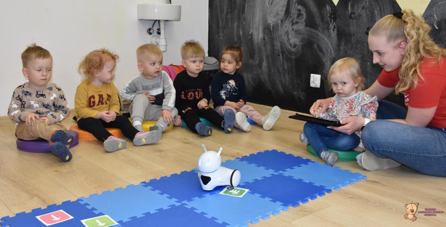 Dziś w naszym żłobku odbyły się zajęcia z robotyki. Zawitał do nas robot Edek, którym Amisiaki uczyły się sterować i jeździć po wyznaczonym torze zbierając różne zwierzątka, których odgłosy później wspólnie sobie przypominaliśmy😀
