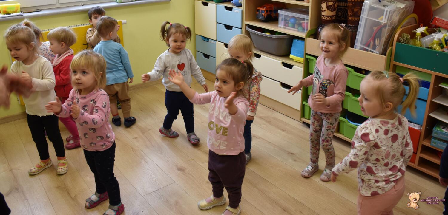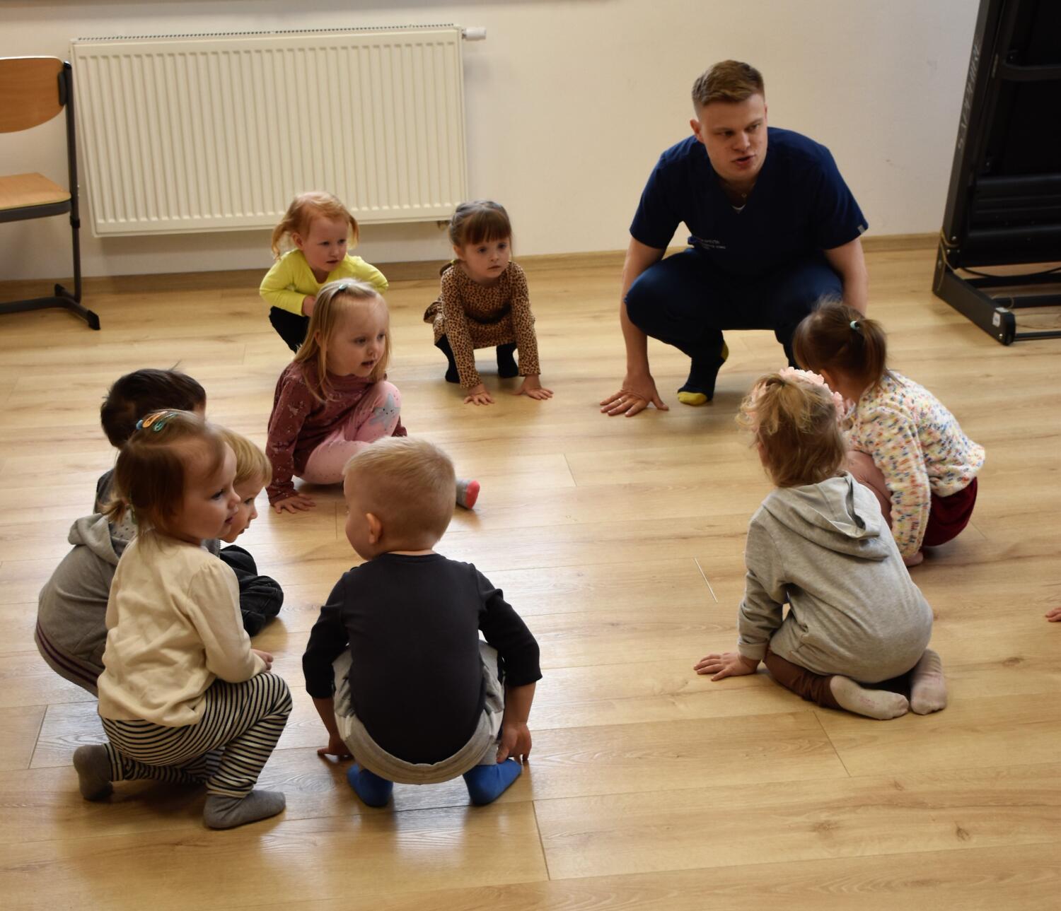 Dzisiaj trochę szaleństwa z wujkiem Mateuszem. Biegaliśmy w kółku i zmienialiśmy kierunek biegu. Kucaliśmy i podskakiwaliśmy wysoko, a także głośno tupaliśmy nogami. Chodziliśmy też po pochylni i z niej zeskakiwaliśmy. Za każde ćwiczenie wujek nagradzał nas bańkami. Na koniec ćwiczyliśmy naszą koordynację, podczas huśtania na huśtawce próbowaliśmy zbić jak najwięcej baniek mydlanych. 😉