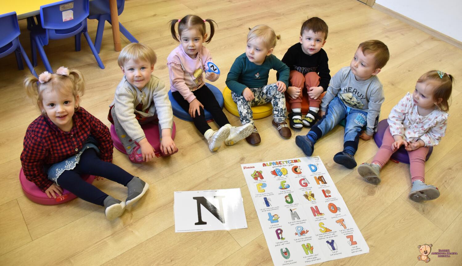 Dziś na zajęciach z nauki literek nasze wesołe Pszczółki poznały literkę N. Dzieci odszukiwały pośród kolorowych piłeczek ilustracji przedstawiających różne rzeczy rozpoczynające się na tą literę. Uczyliśmy się poprawnej wymowy oraz wzbogaciliśmy nasz zasób słownictwa 🙂 Na koniec dzieci wykonywały pracę plastyczną z użyciem bibuły i kleju 🙂