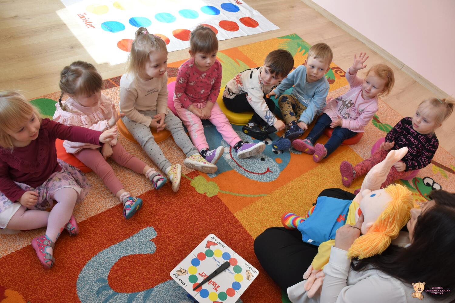 W ten wiosenny czas ciocia przyniosła Twister ! Ale żeby w niego zagrać musieliśmy przypomnieć sobie gdzie mamy lewa, prawa rączkę i nóżkę oraz kolory ! A potem to już tylko losowaliśmy i graliśmy !!! To była super zabawa